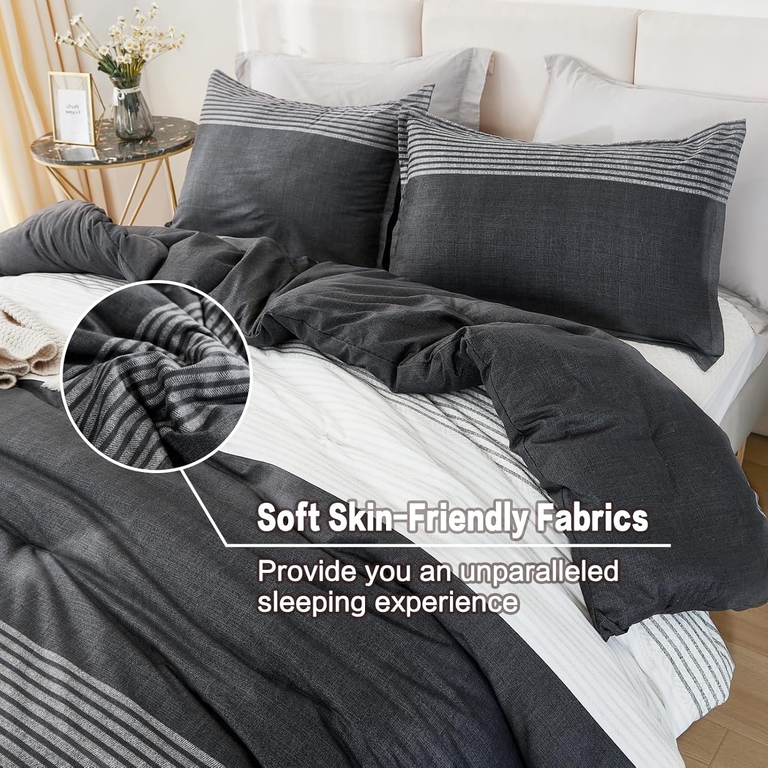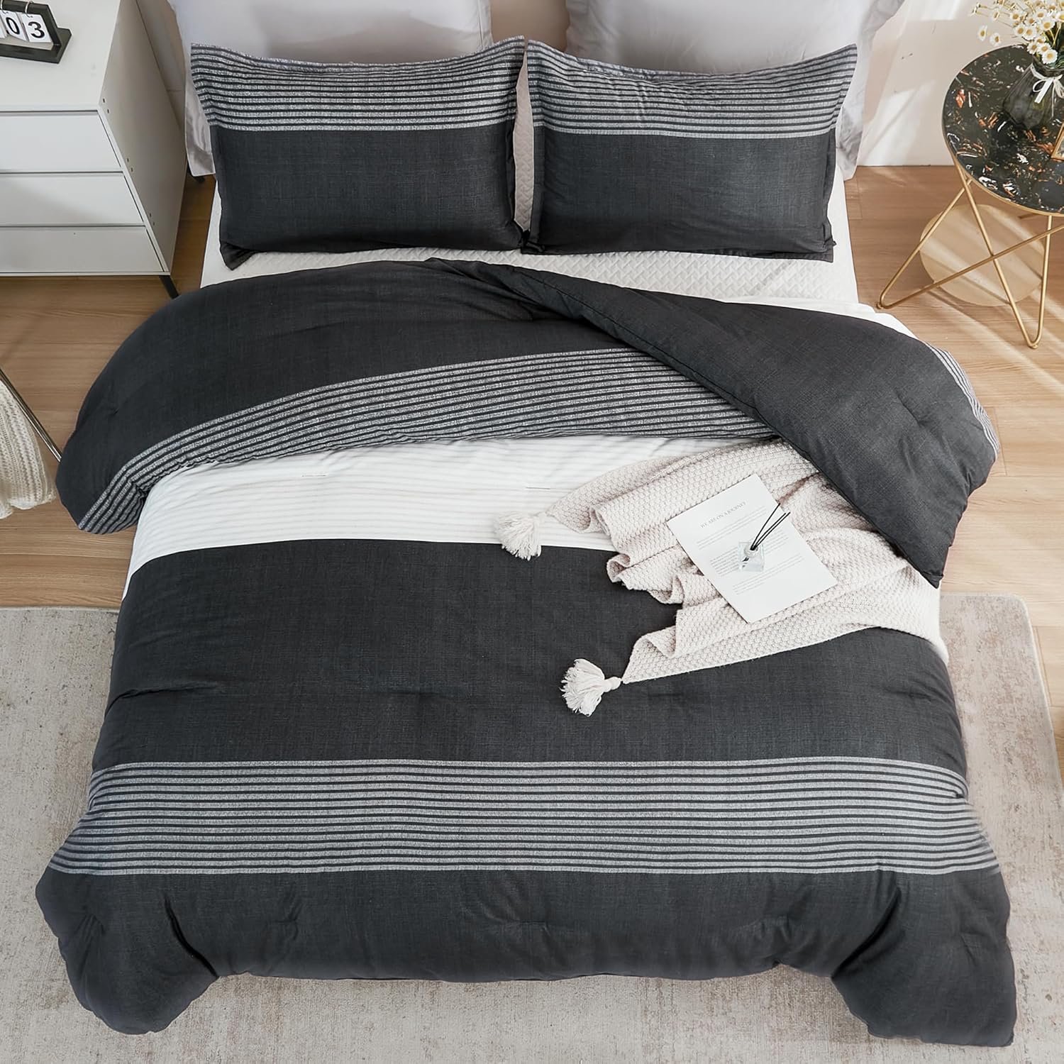[ MODERN STRIPED DESIGN ] Litanika has combined three color patchworks with classic striped pattern to complement each other wonderfully. Striping with colors achieves a stylish look for your room. Black and white are often preferred by artists, and this modern with a casual elegance bedding comforter set is a perfect choice for homeowners with sophisticated taste in decoration. Also, it is a great gift idea for all your loved ones on special occasions.