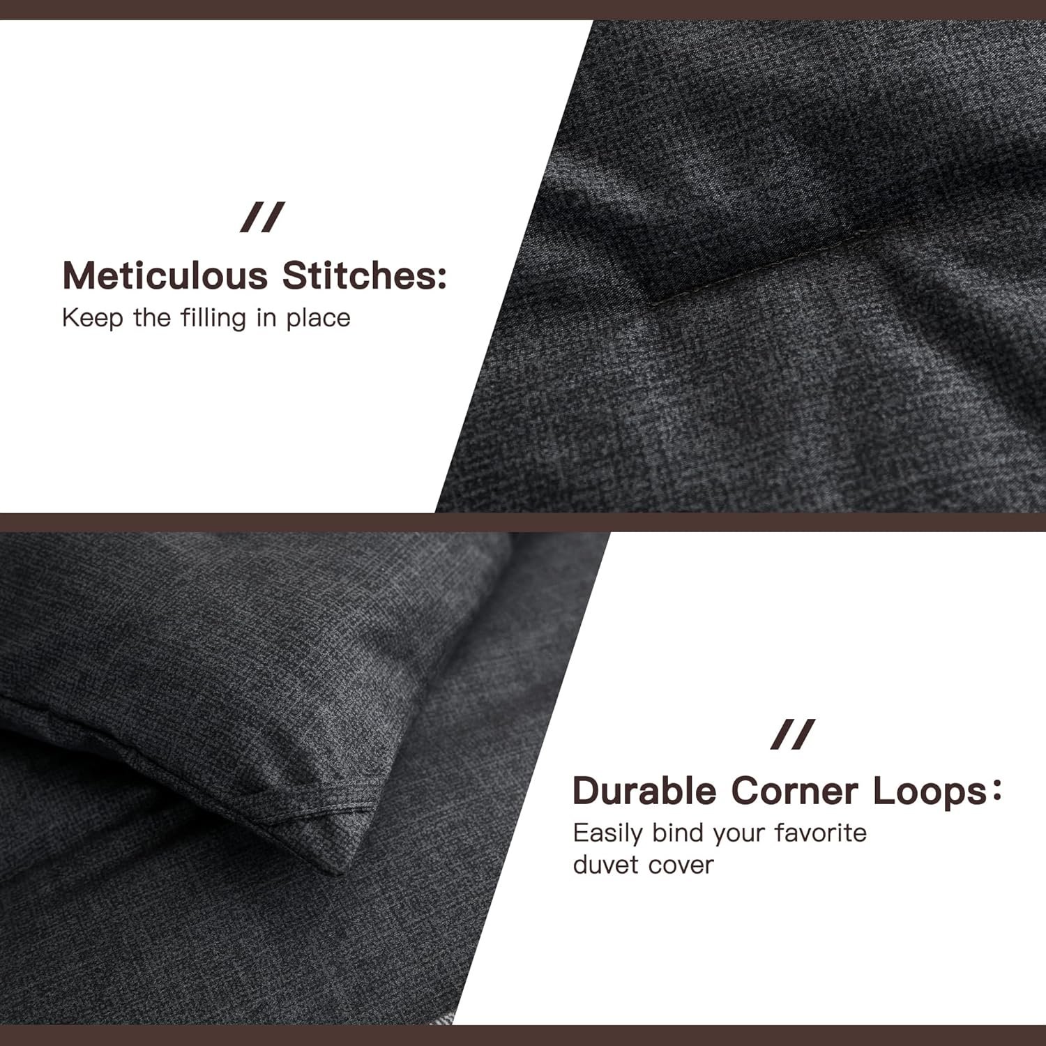 [ ULTRA-SOFT for ALL SEASON ] We adopt 100% breathable microfiber filling that offers good fluffy performance of the lightweight comforter. By clean processing technology, skin-friendly fabrics achieve softness to provide you with exceptional comfort. After hydrophilic treatment, comforter achieves fast absorb moisture and sweat, quick drying, and regulate your temperature cleverly to keep cooler, drier, and warmer for a better sleeping experience, which is comfortable and warm for most people.