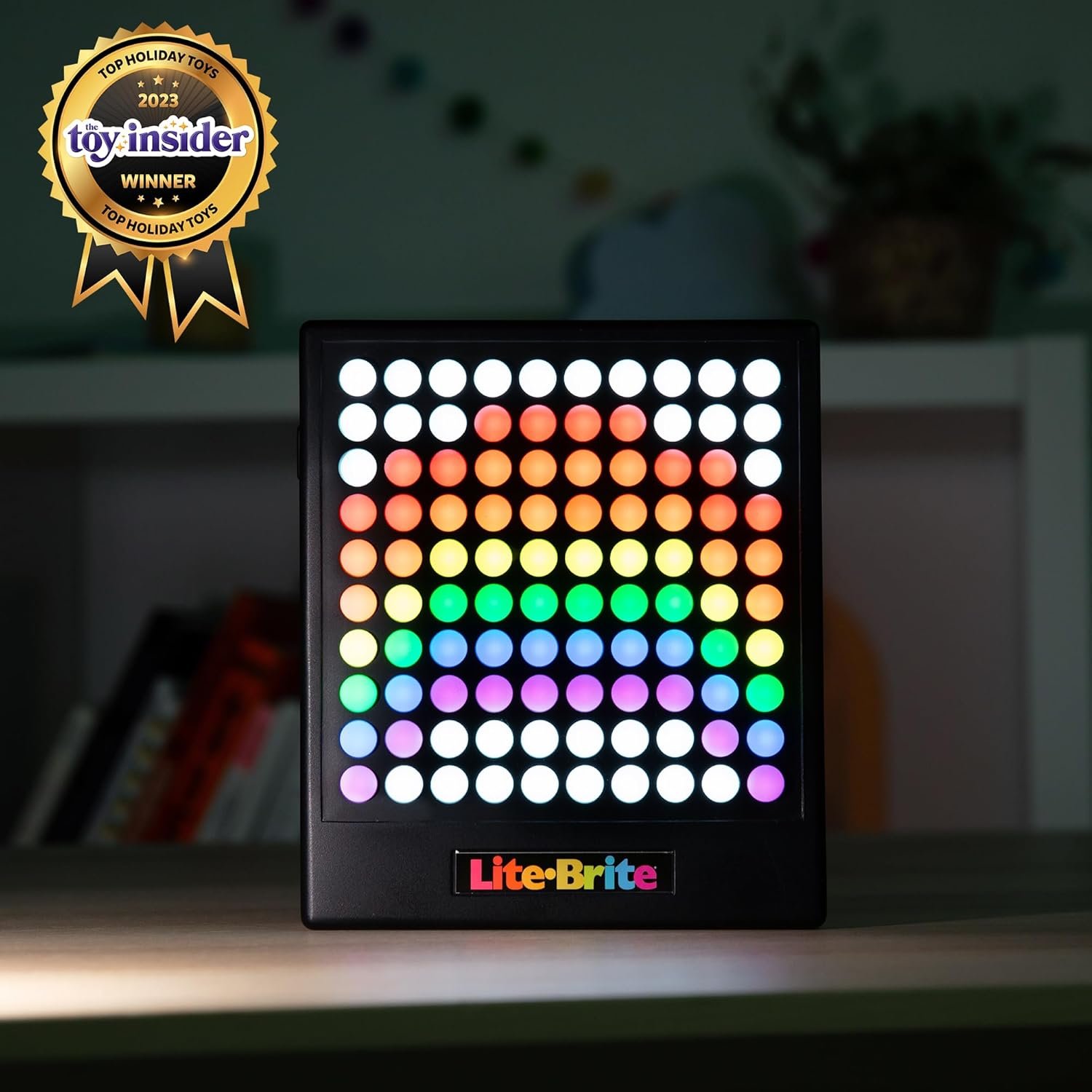 Lite-Brite Reimagined: This Lite-Brite features button instead of pegs. Press the 100 light-up buttons to swap through seven colors as you create art or play games.