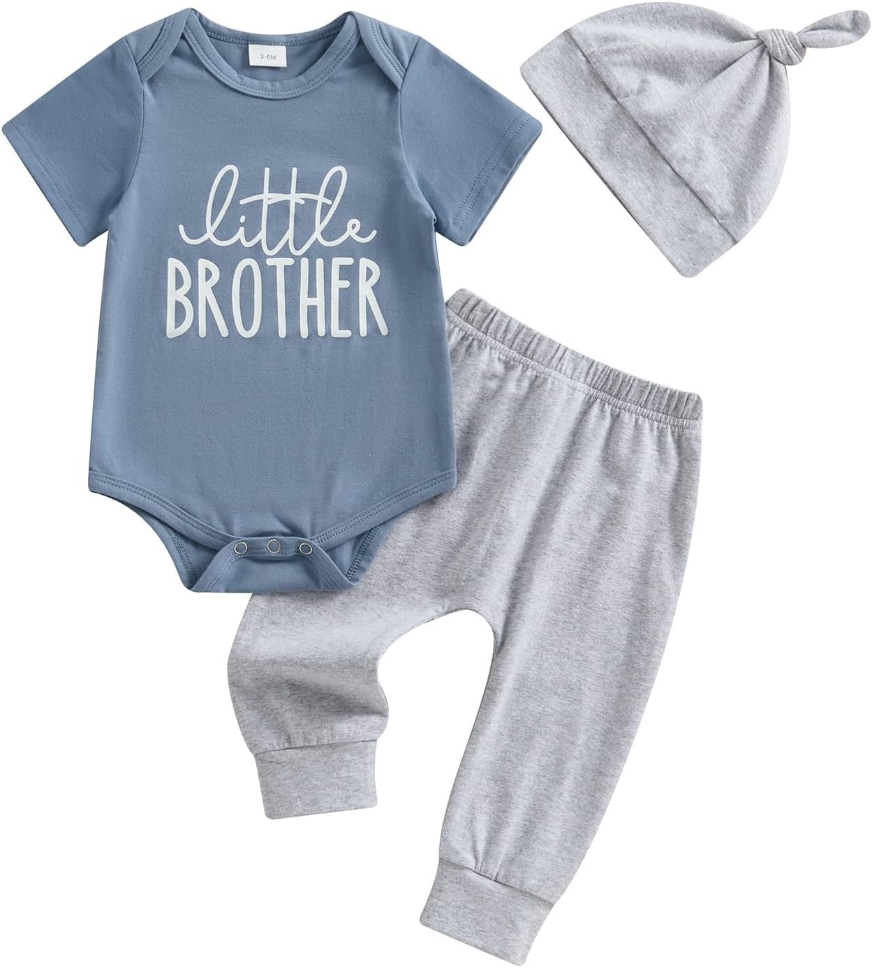 Little Brother Newborn Outfit T-Shirt Romper Top and Pants Sets Baby Coming Home Hospital Clothes Summer Clothing