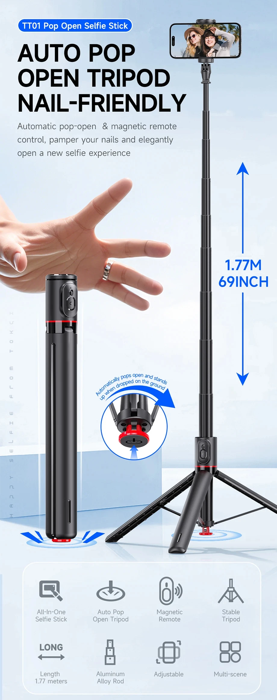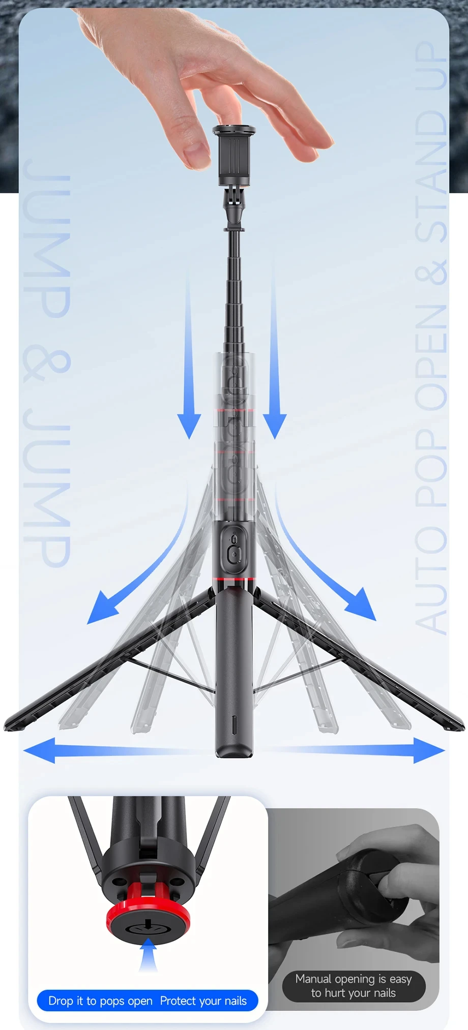 Live Streaming Bracket Phone Holder Photography Automatic Pop-up Magnetic Remote Control Tripod Selfie Stick Stand Accessories