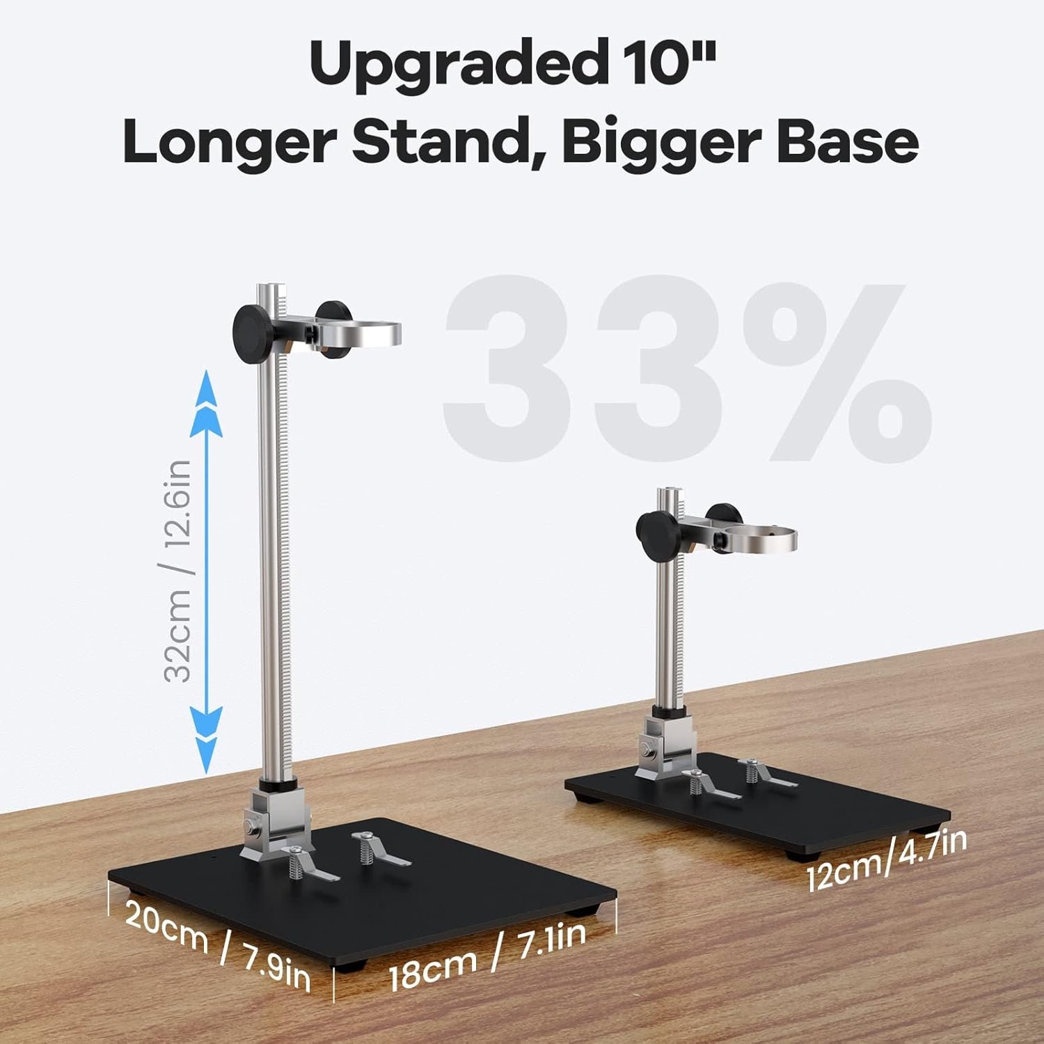 【Taller 12.6 inch Stand, Higher Working Distances】 Soldering Microscope LM210 comes with a taller 12.6 inch stand with fine gears, which provides a higher working distances and allows for larger objects to be observed easily. You have plenty of room to complete your electronics repair project