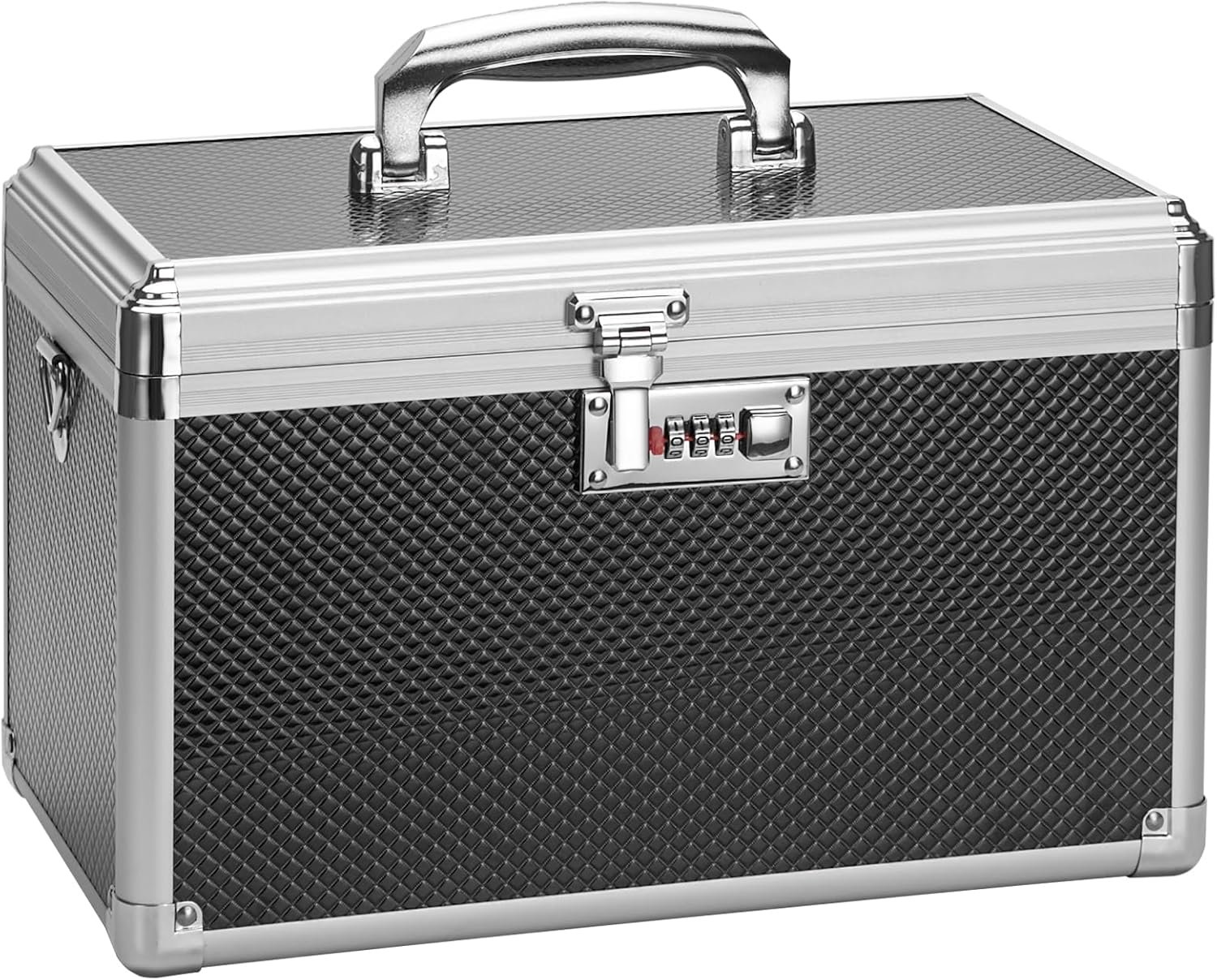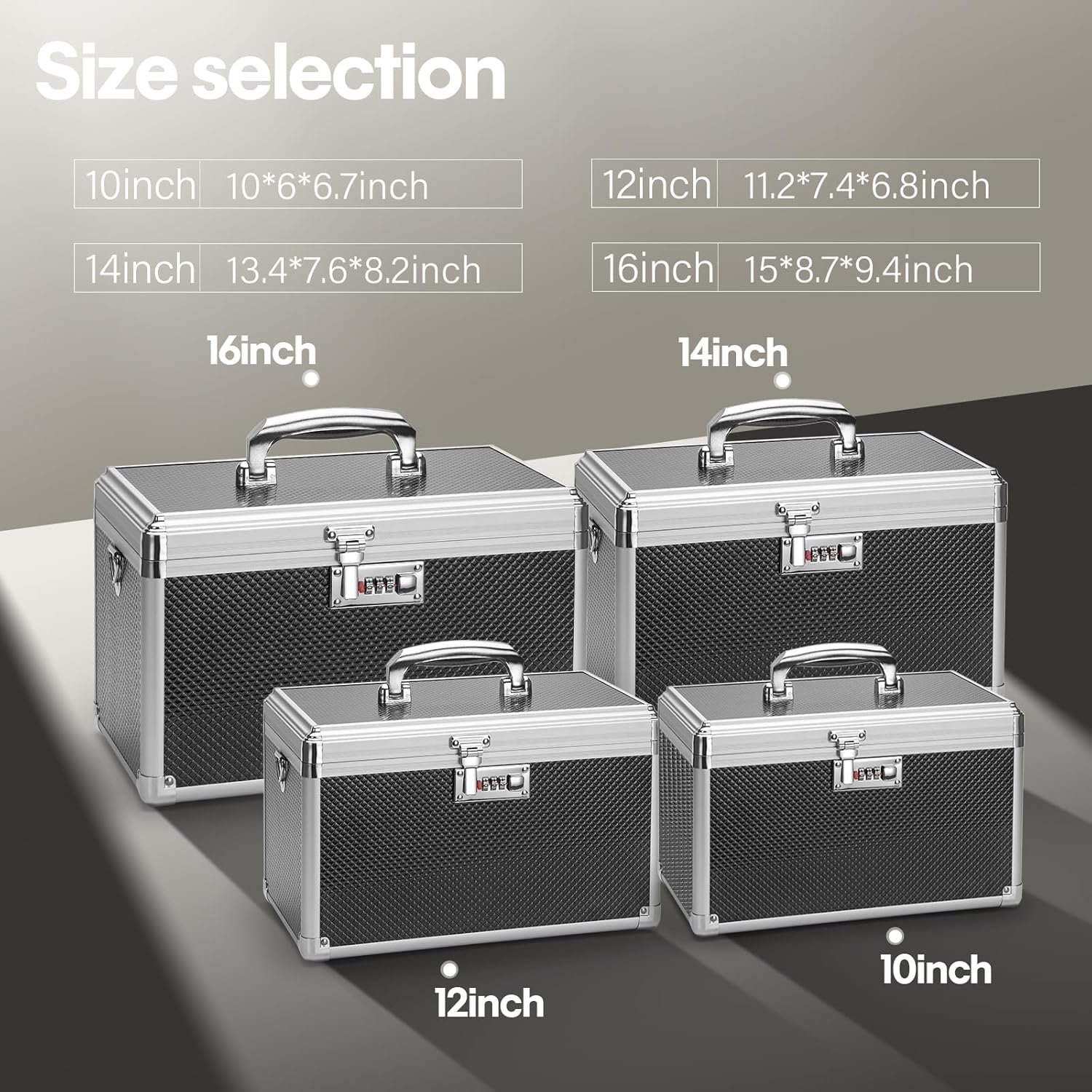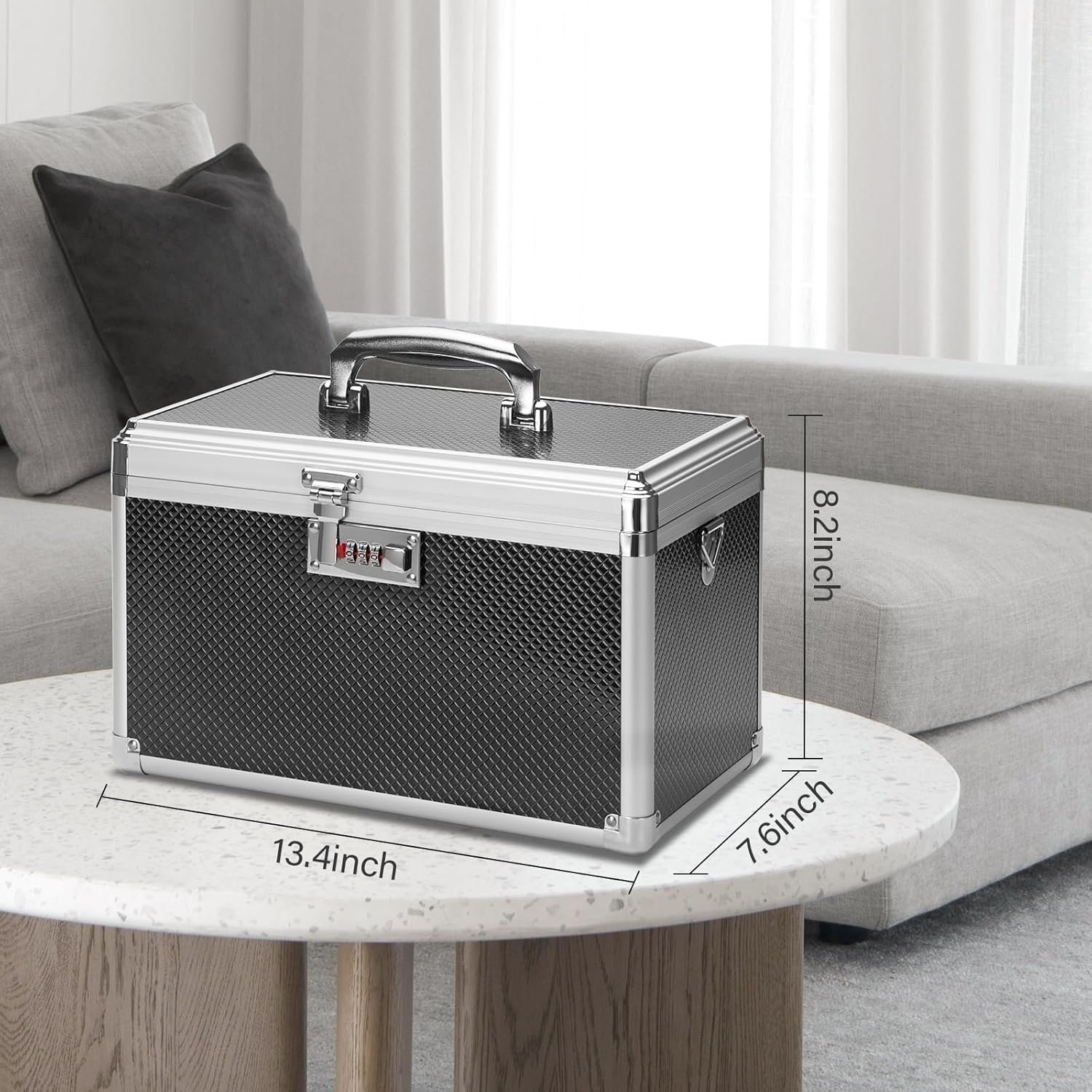 Lock Box for Medication – 13.4 x 7.6 x 8.2 Inch Medicine Organizer Case with Combination Lock, First Aid Kit Empty, Lockbox with Code, Portable Storage Box for Home School Bussiness, Black