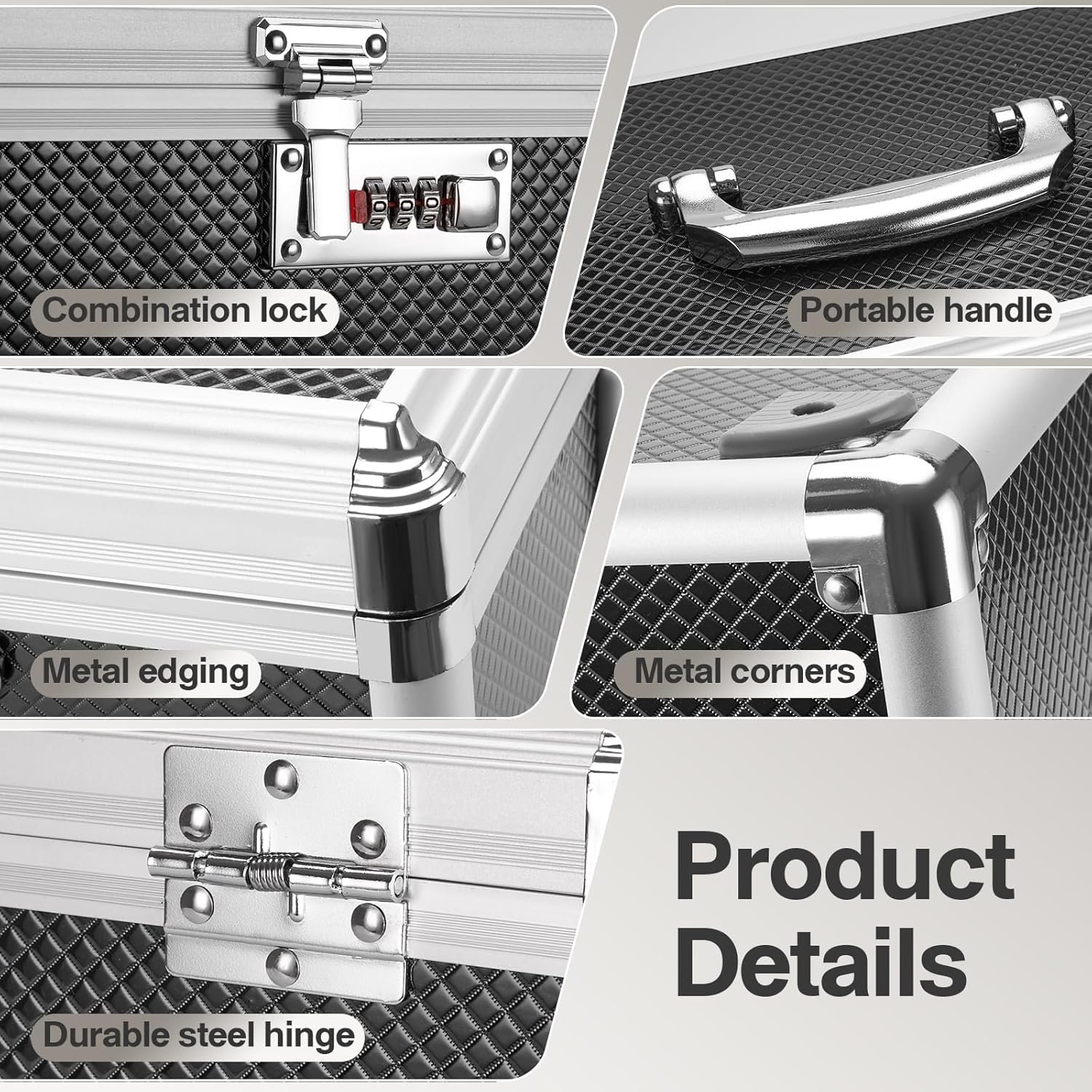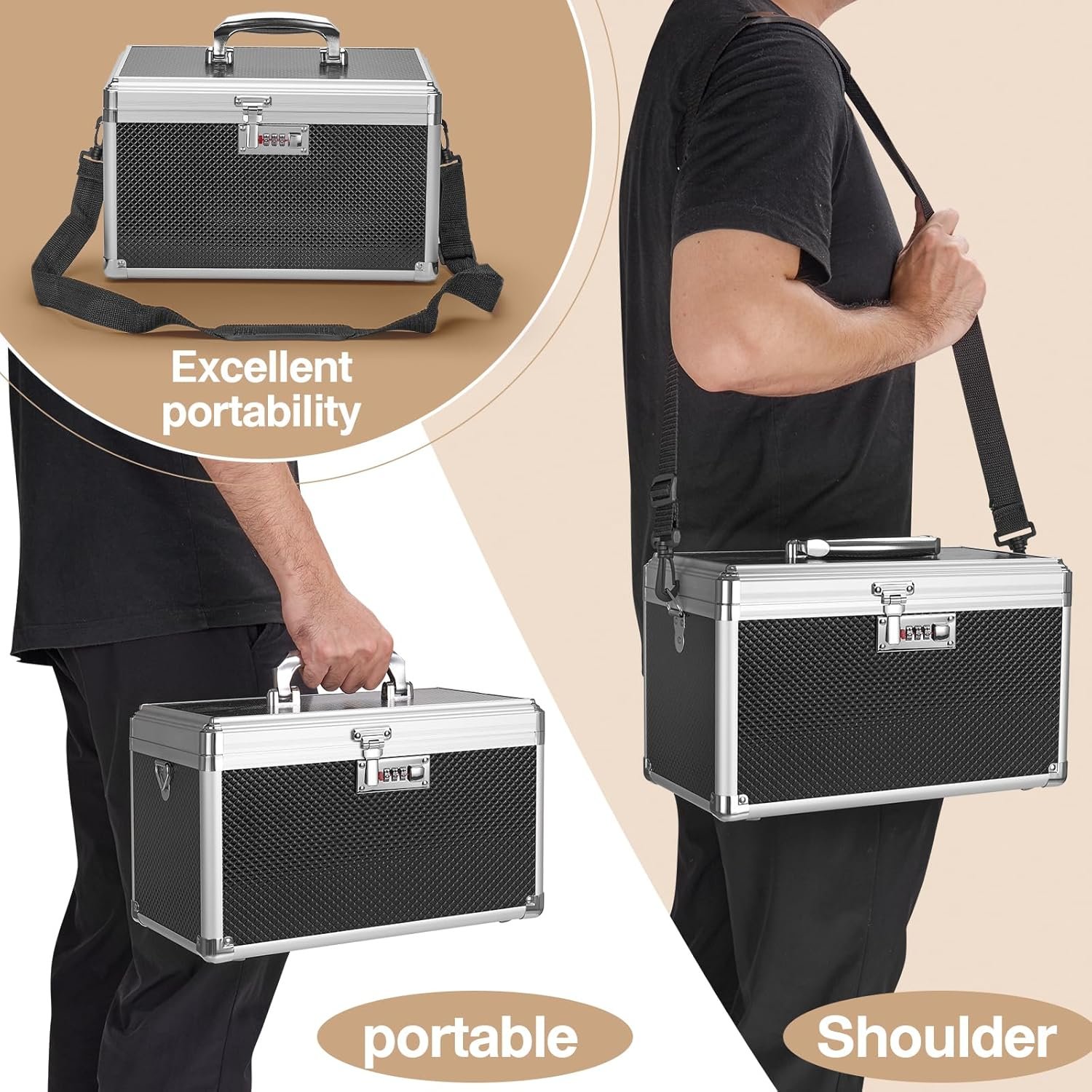 Durable Organizer: Constructed with an aluminum alloy frame, MDF, a tray, and a shoulder strap, this medicine lock box features sturdy hardware hinges and stainless steel corner protections, ensuring long-lasting durability
