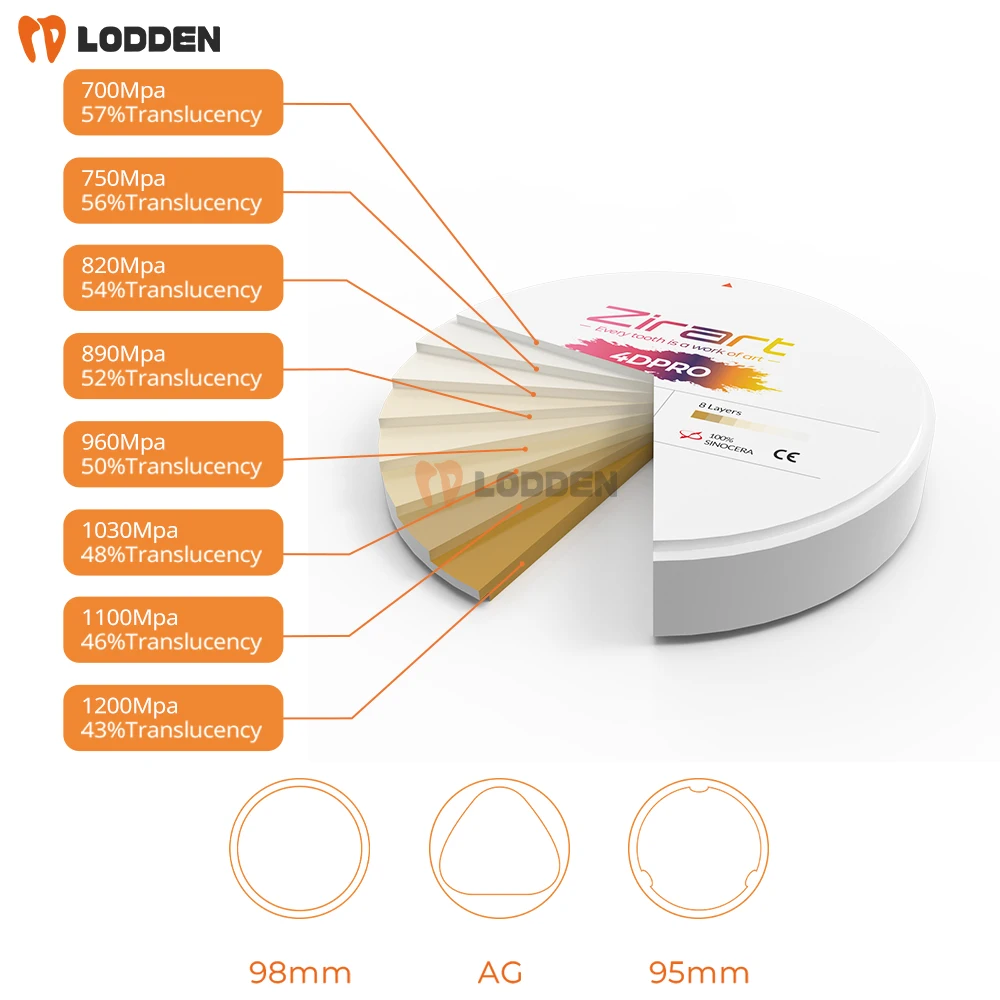 4 reviews for Lodden 4D PRO Zirconia Dental Multilayer Block Disc 98mm Dental Zirconium Disc Disk Block for CAD CAM Dental Products