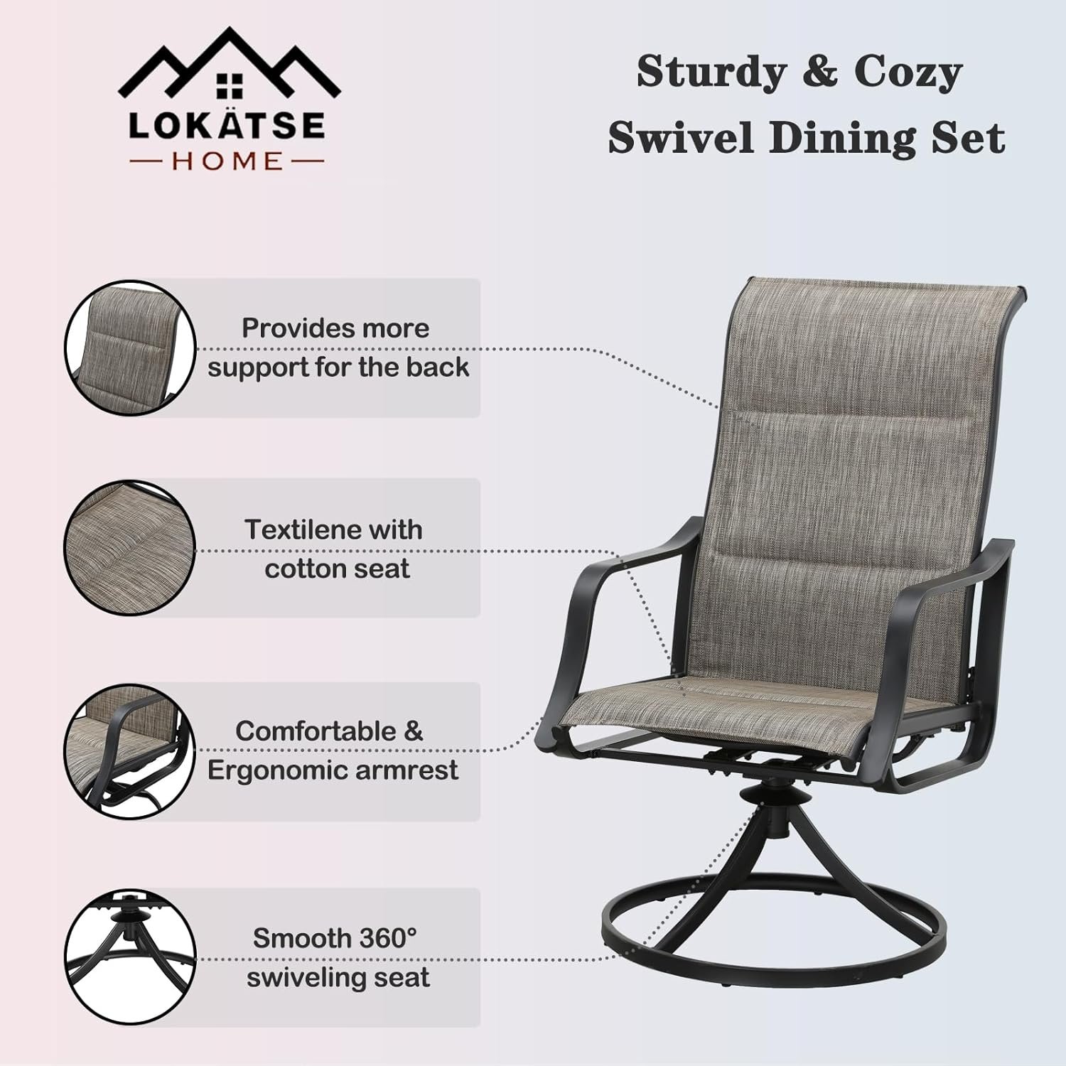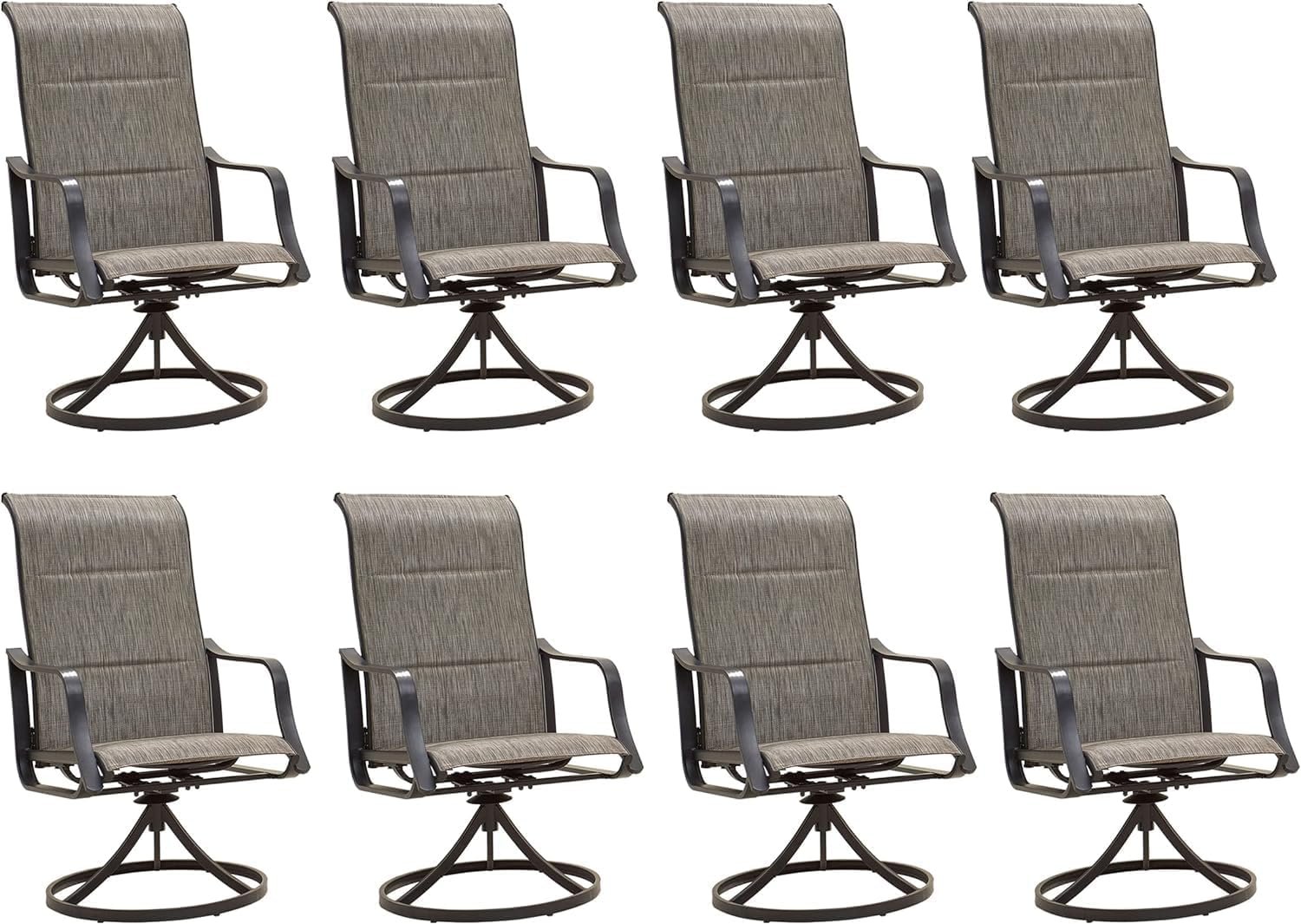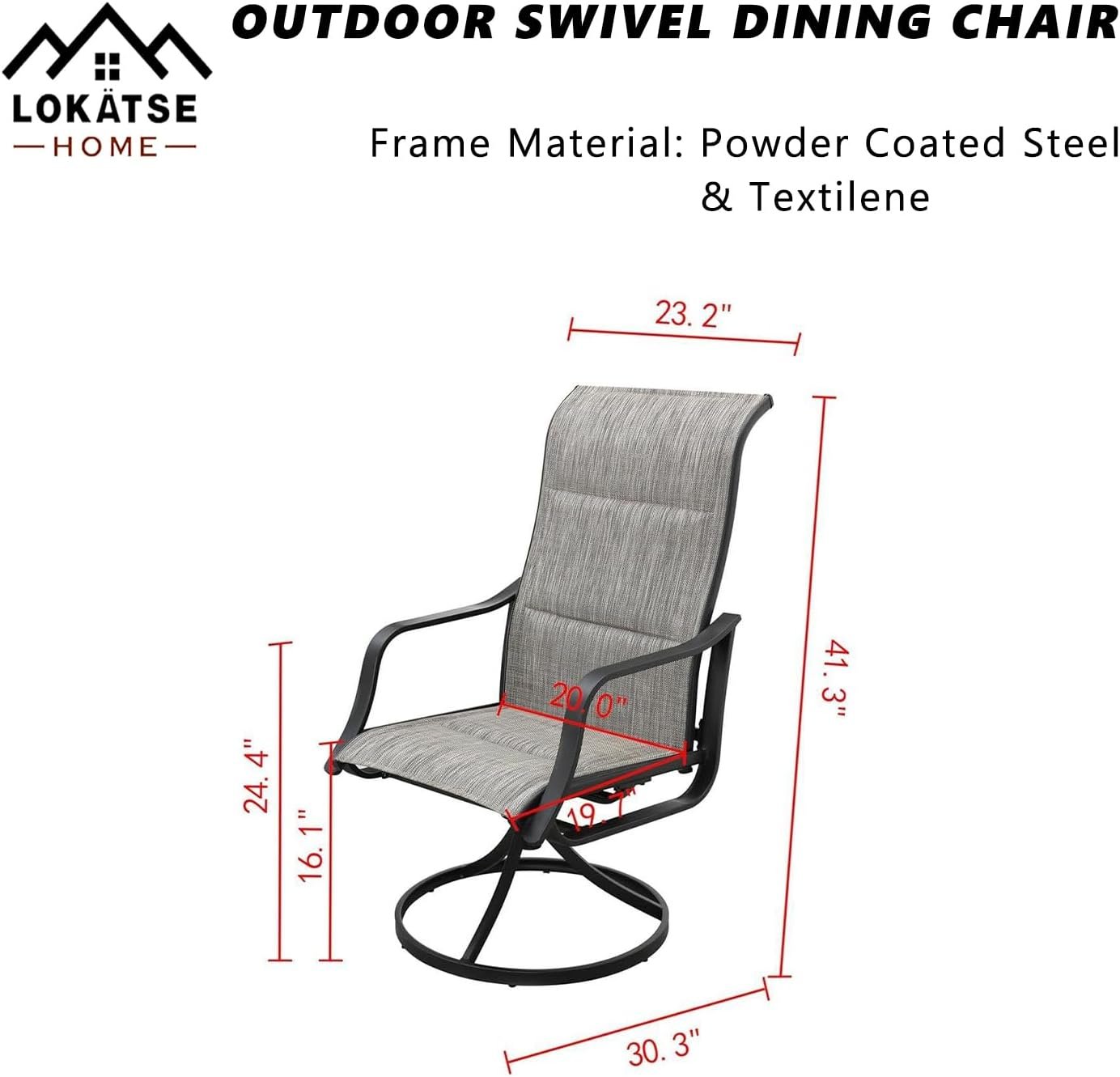 Stable & Durable: Swivel Patio Dining Chairs is made of black powder coated steel and sturdy and durable Textilene fabric, which can support a weight of 250 pounds. The overall frame design of the seat has excellent stability, ensuring its robustness and durability in the coming years