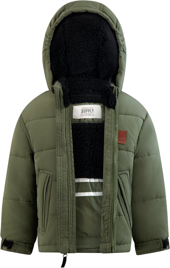 Keep your child warm and stylish with the LONDON FOG Boys’ Heavyweight Stylish Winter Puffer Jackets. These jackets are made with a durable 100% polyester shell and features a soft high-pile fleece lining for added warmth. Designed to be water-resistant and cozy, it helps provide protection in light rain or snow. The front zipper closure allows for easy on and off, two flap pockets to keep your child hands warm or easy storage and the adjustable elastic cuffs to keep the cold drafts out. The high-pile fleece lined hood adds extra protection from the cold to your child’s neck and head. These functional winter jacket offers reliable warmth and durability for all outdoor activities. Get your child these cozy and stylish LONDON FOG Boys’ Stylish Winter Puffer Jackets today! The branded logo patch adds a classic touch to this essential cold-weather outerwear.