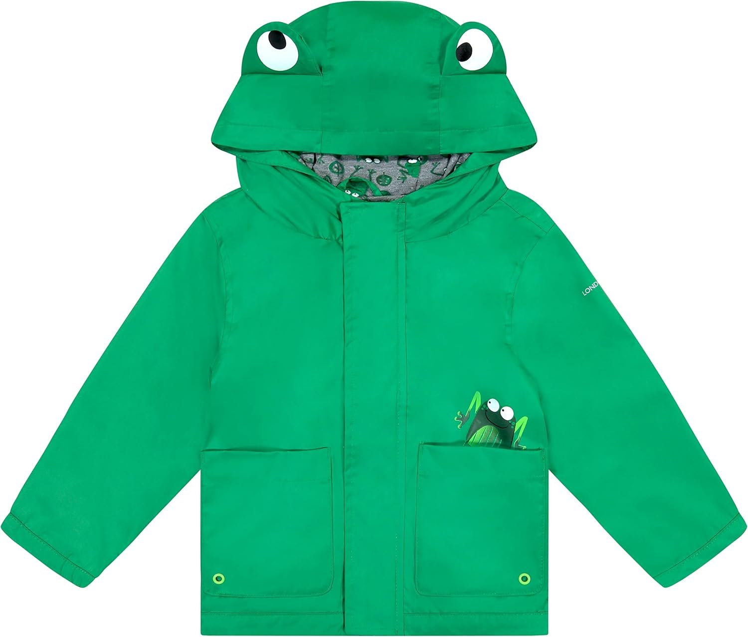 Keep your little one warm and dry in this adorable waterproof rain jacket, perfect for rainy day adventures. Designed with a playful animal character on the hood and front, this lightweight jacket is both functional and fun, making it a great choice for outdoor play. The jacket features a soft lining for added comfort and a secure zipper closure to keep out the wind and rain. Ideal for layering over everyday outfits, this rain jacket is a must-have for parents looking for practical yet cute outerwear for their child.