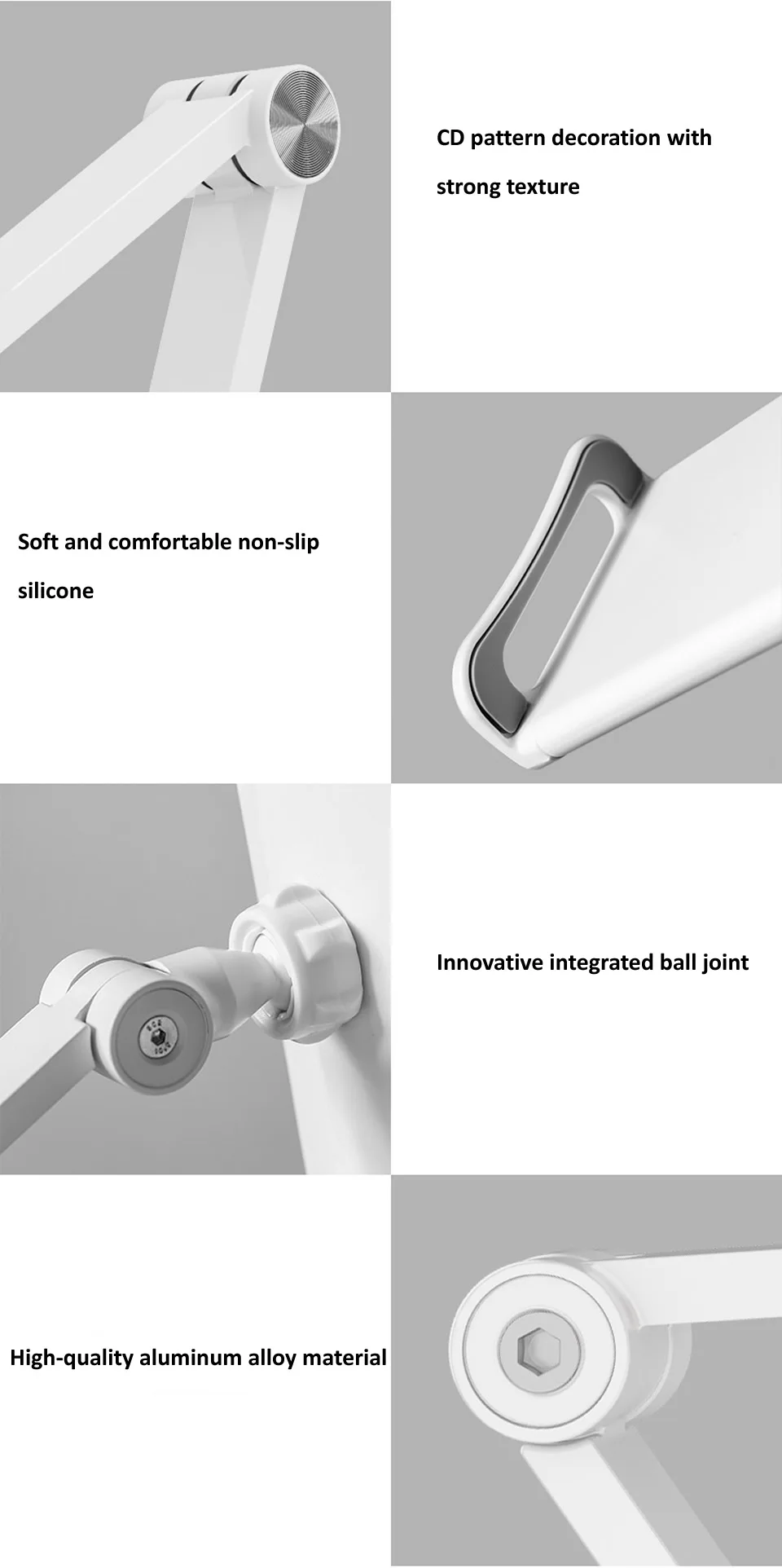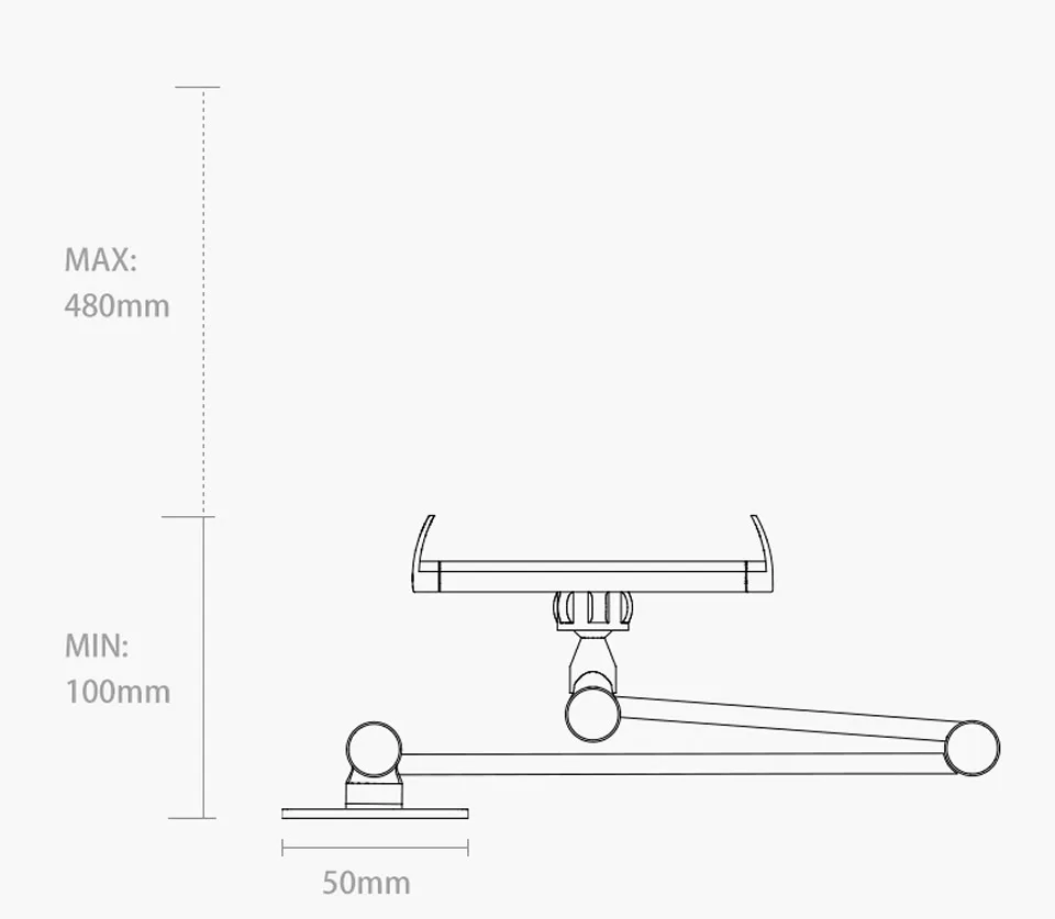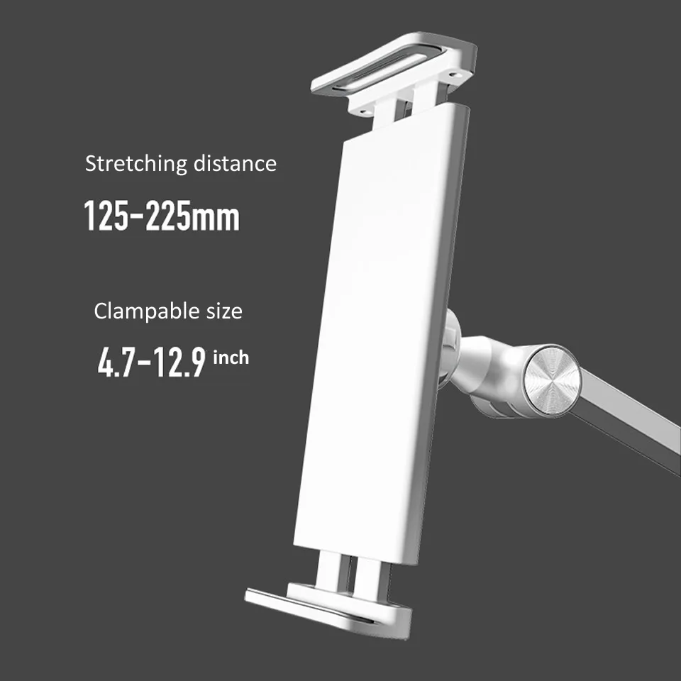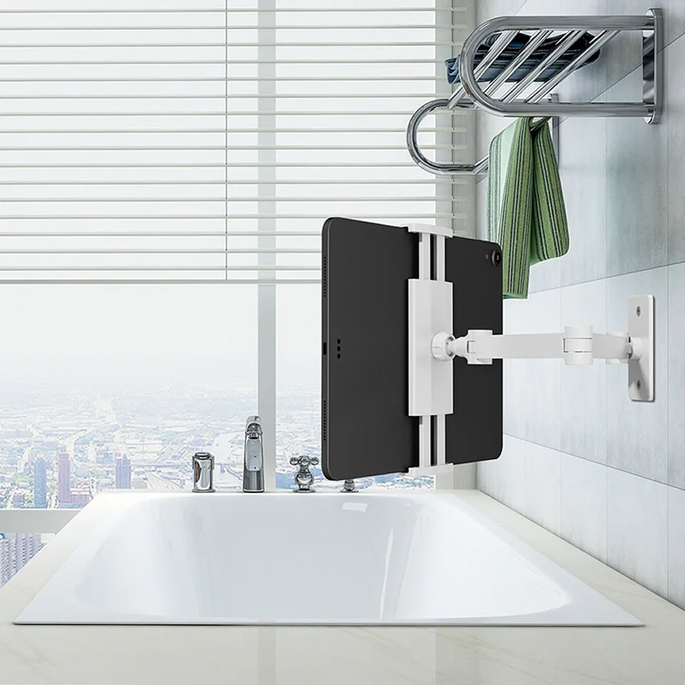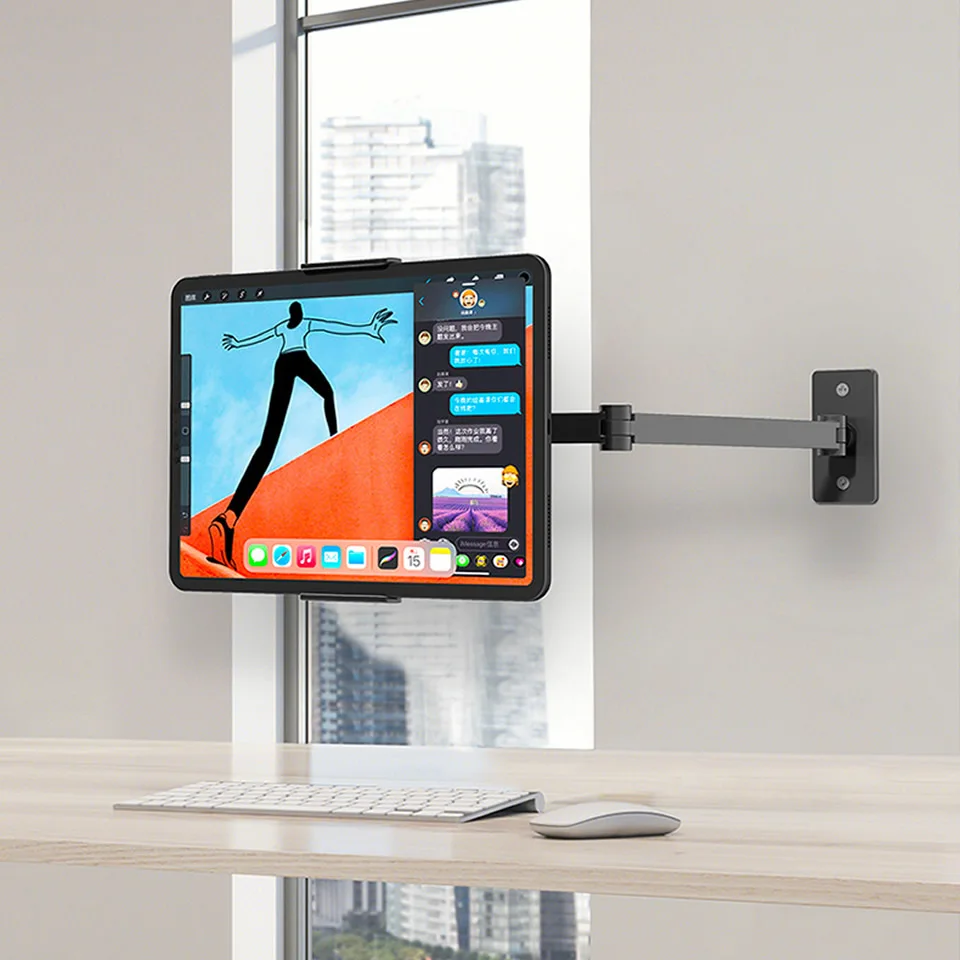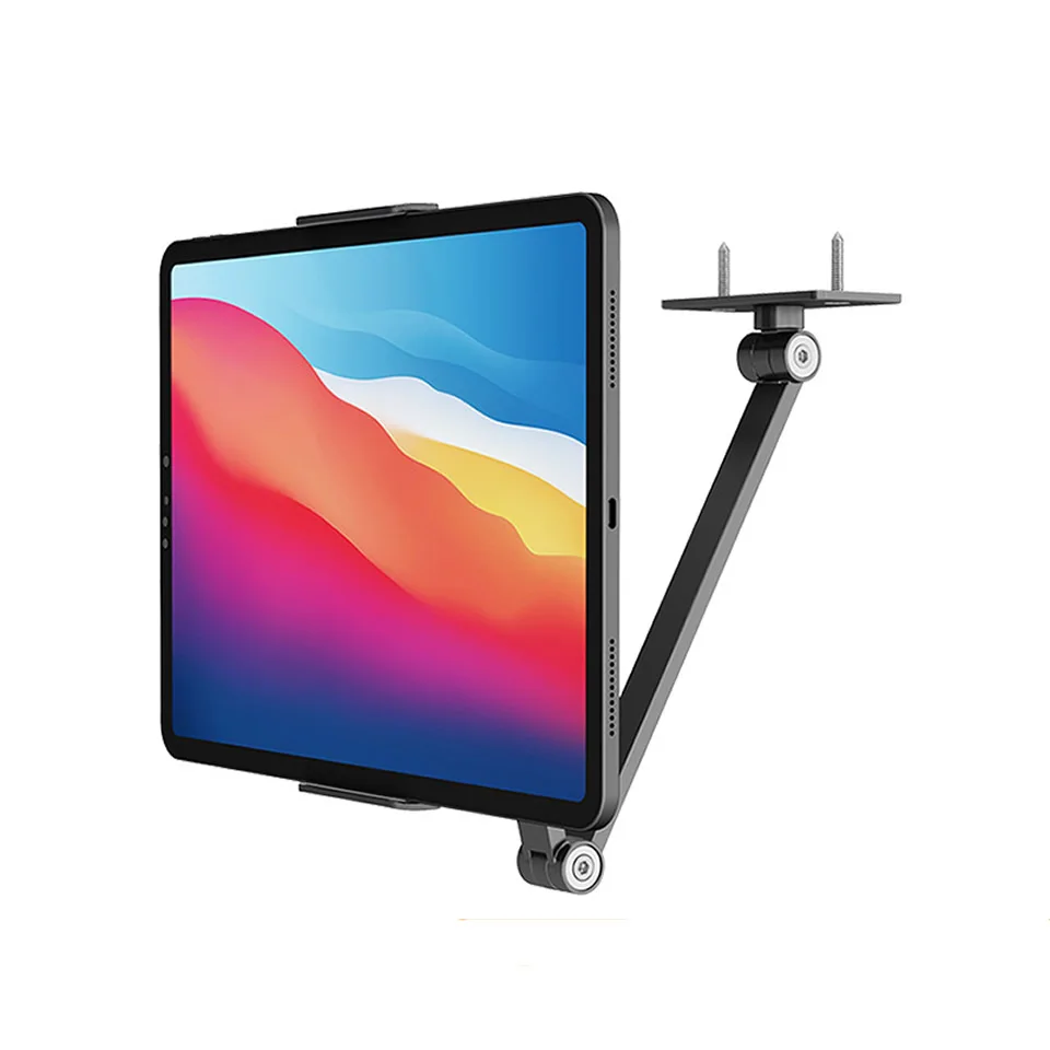 Long Arm Wall Mount Tablet Stand Multi Angle Adjustable Three Shaft Design Aluminum