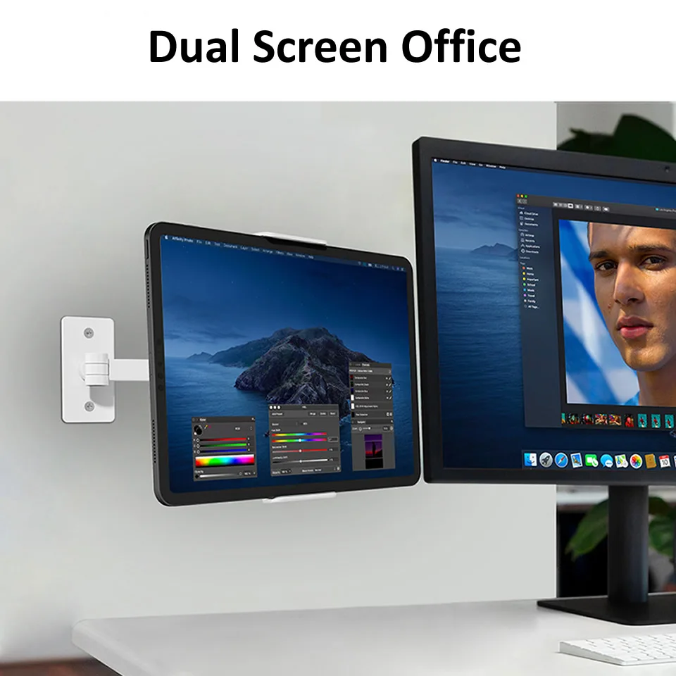 Long Arm Wall Mount Tablet Stand Multi Angle Adjustable Three Shaft Design Aluminum Phone Wall Mount Holder for iPhone iPad 12.9