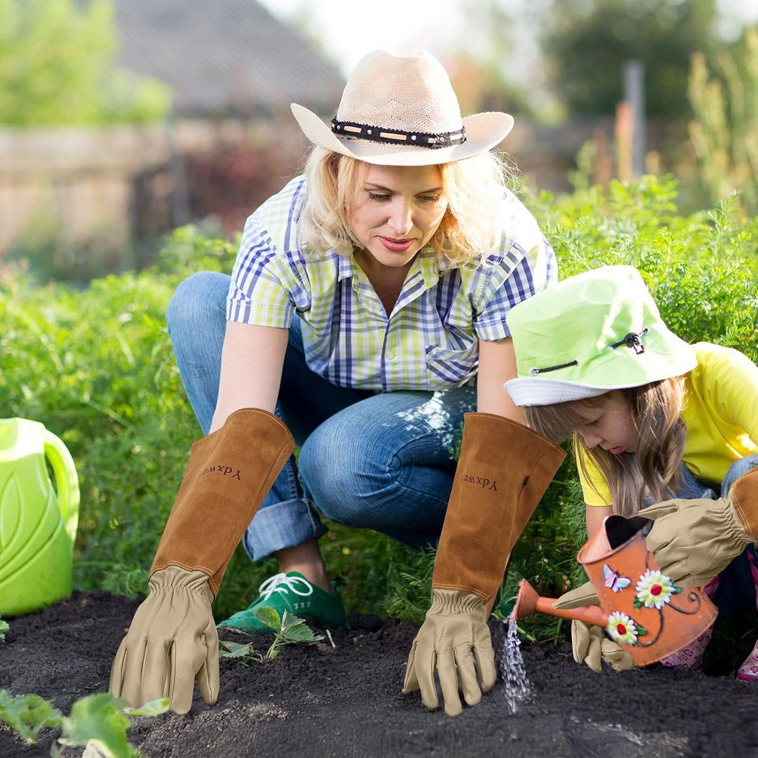 Long Gardening Gloves Women and Men Thorn Proof Rose Pruning Gauntlet Cactus Gloves Goatskin/Cowhide gloves (1 Pair)