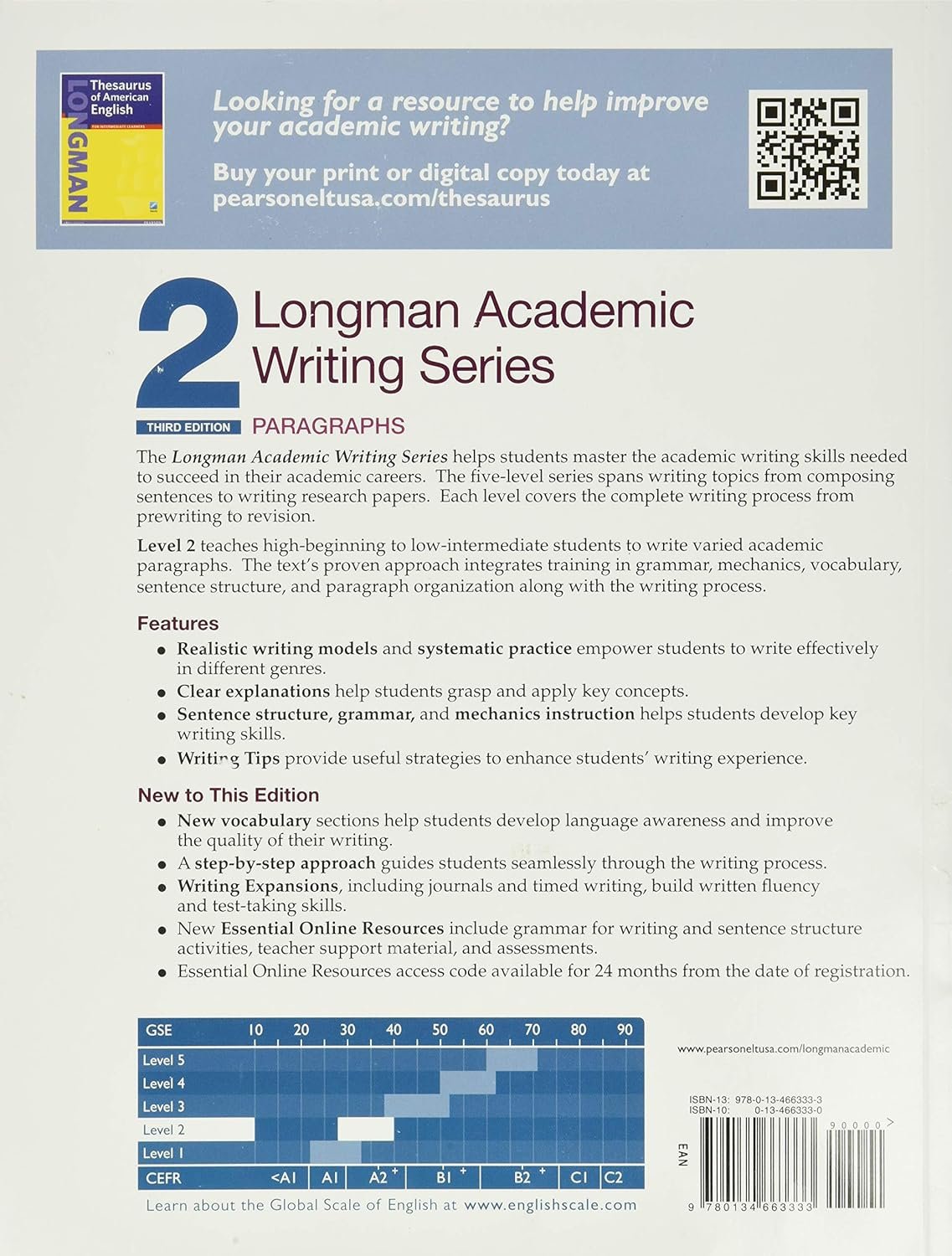 The Longman Academic Writing Series helps develop student writing from basic composition of sentences and paragraphs to academic essays and research papers. At each level, students are offered guidance in the complete writing process from prewriting to revision, and are provided with clear explanations, extensive practice, and consistent coverage of sentence mechanics and grammar.