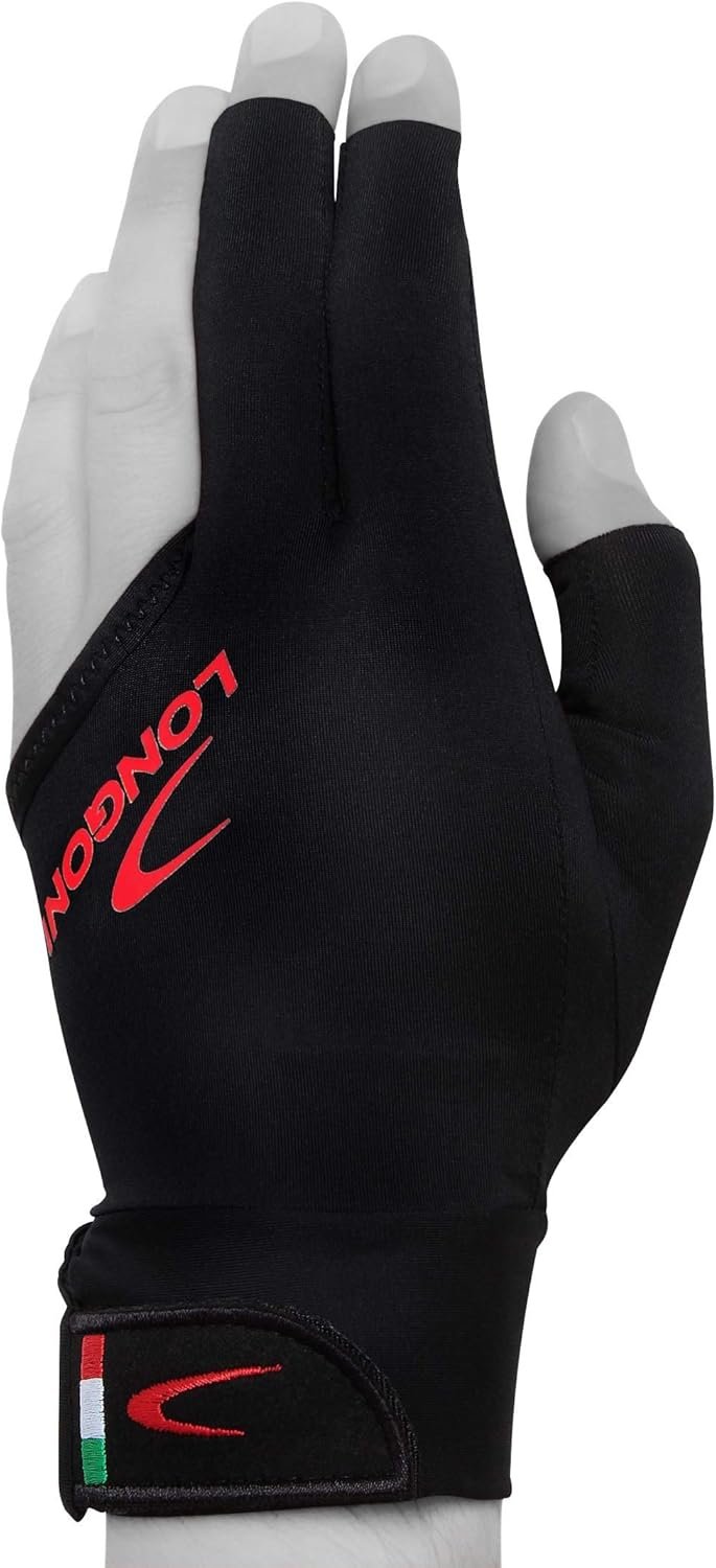 Longoni Black Fire 2.0 Billiard Pool CUE Glove – for Left or Right Hand – Black