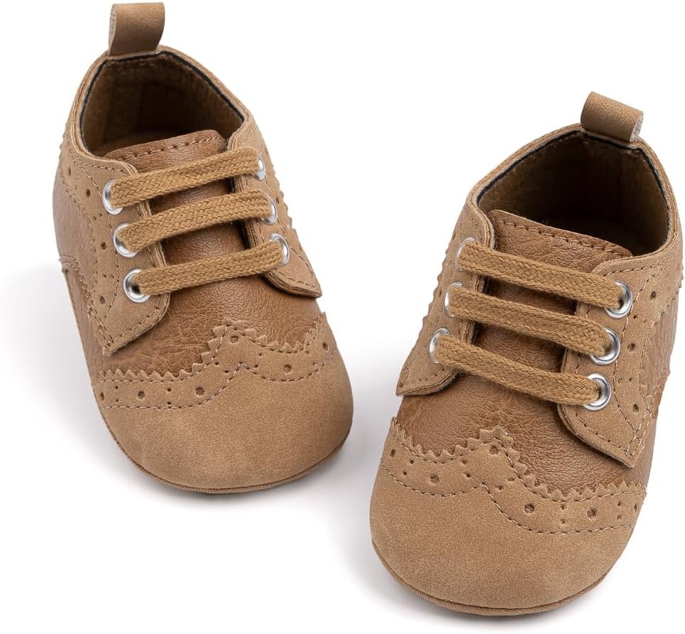 LONSOEN Baby Oxford Dress Shoes Infant Toddler Wingtip Crib First Walking Shoes