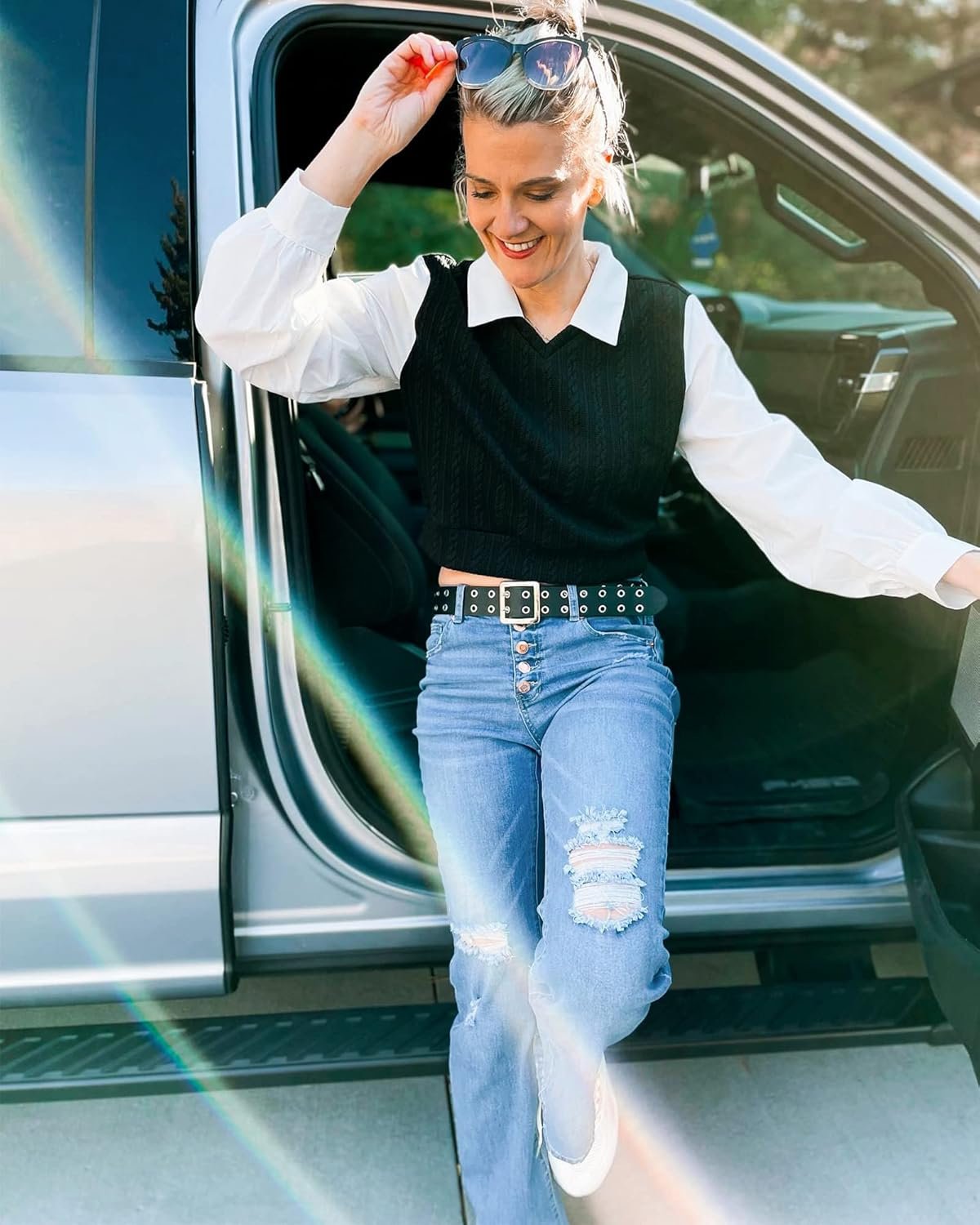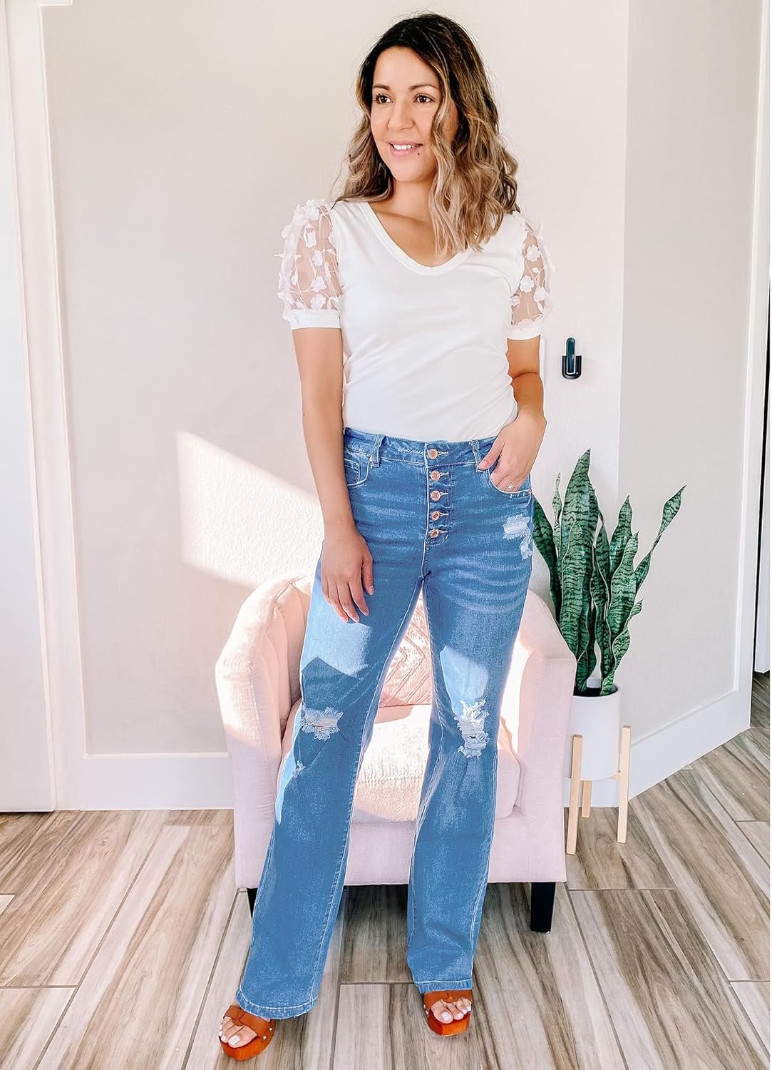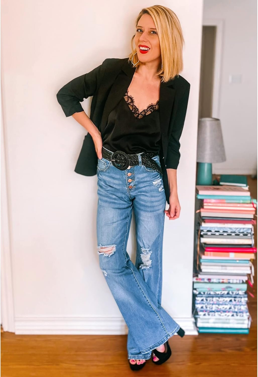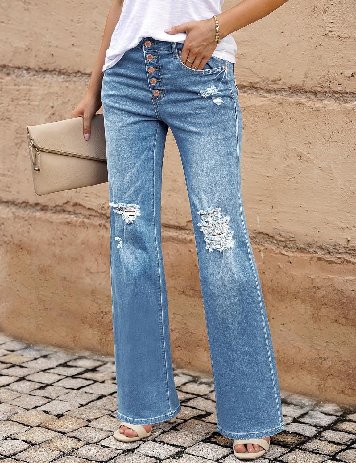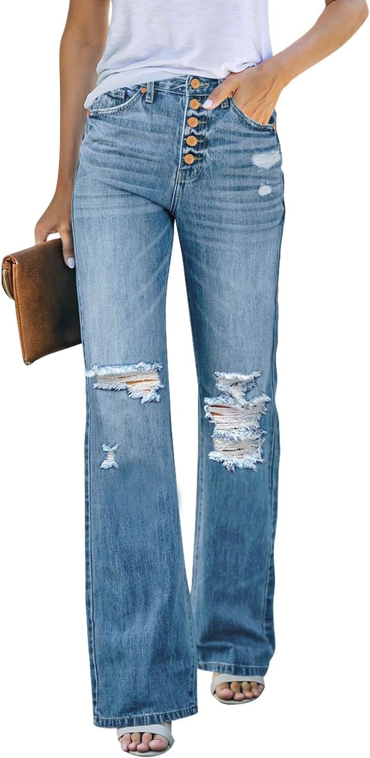 LookbookStore High Waisted Ripped Flare Jeans for Women Distressed Bell Bottom Jeans Wide Leg Pants