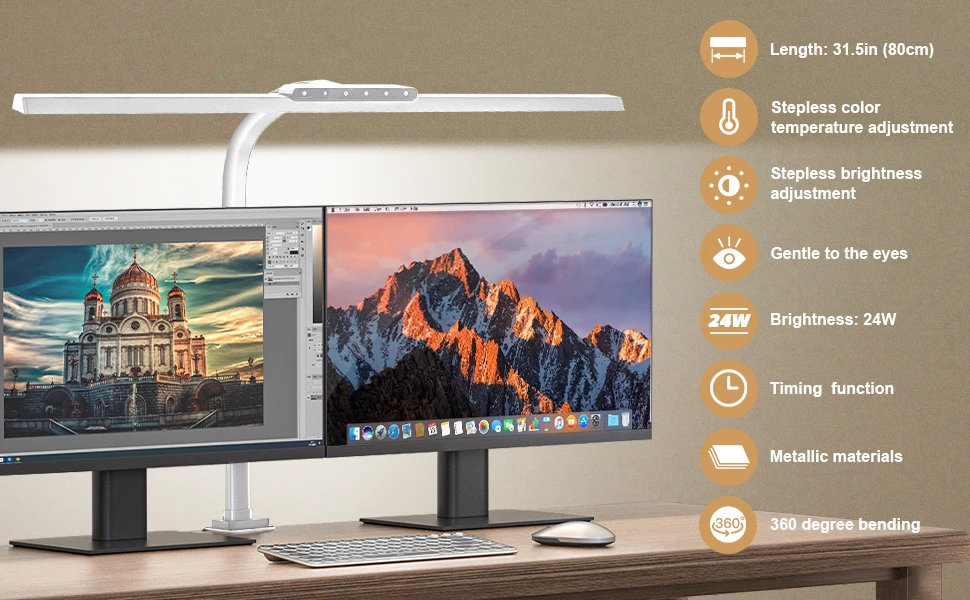 LOOPITYS 24W LED Desk Lamp 80cm 2310 Lumens Touch Control Dimmable Adjustable Color Temperature Clamp Table Lamp