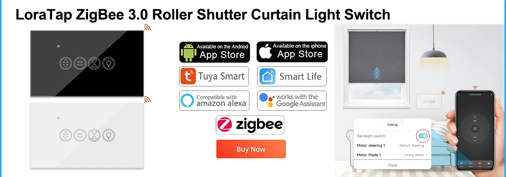 10 reviews for LoraTap Tuya Smart Life WiFi Roller Shutter Curtain Light Switch for Electric Motorized Blinds Work for Alexa Google Home Voice