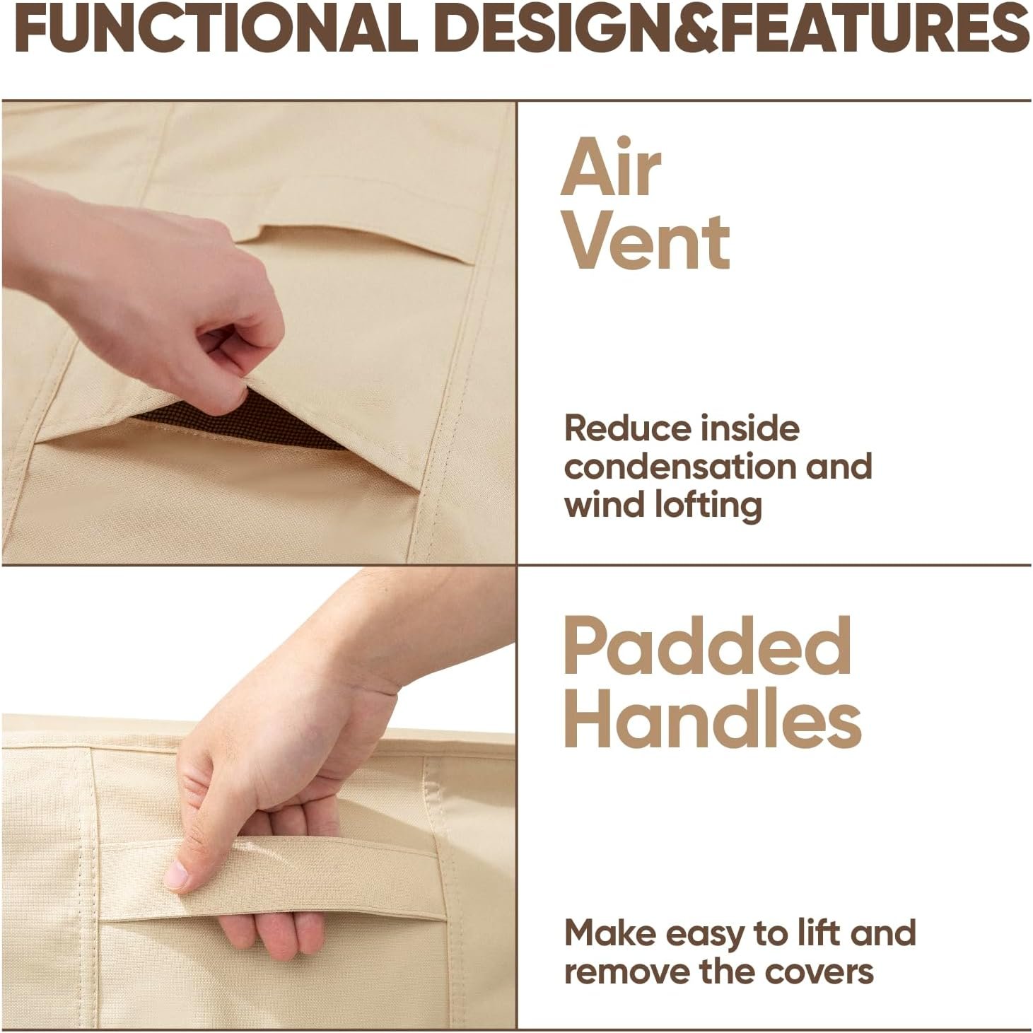 EASY TO USE: Large padded handles make easy to lift and remove the lawn chair covers, and air vents reduce inside condensation and wind.
