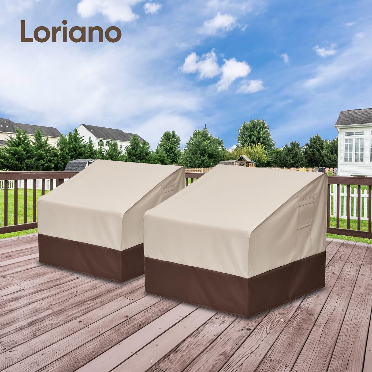 loriano Patio Chair Covers Waterproof Outdoor Chair Covers 600D Heavy Duty Fit as Lawn Lounge Deep Seat(2 Pack,Median)