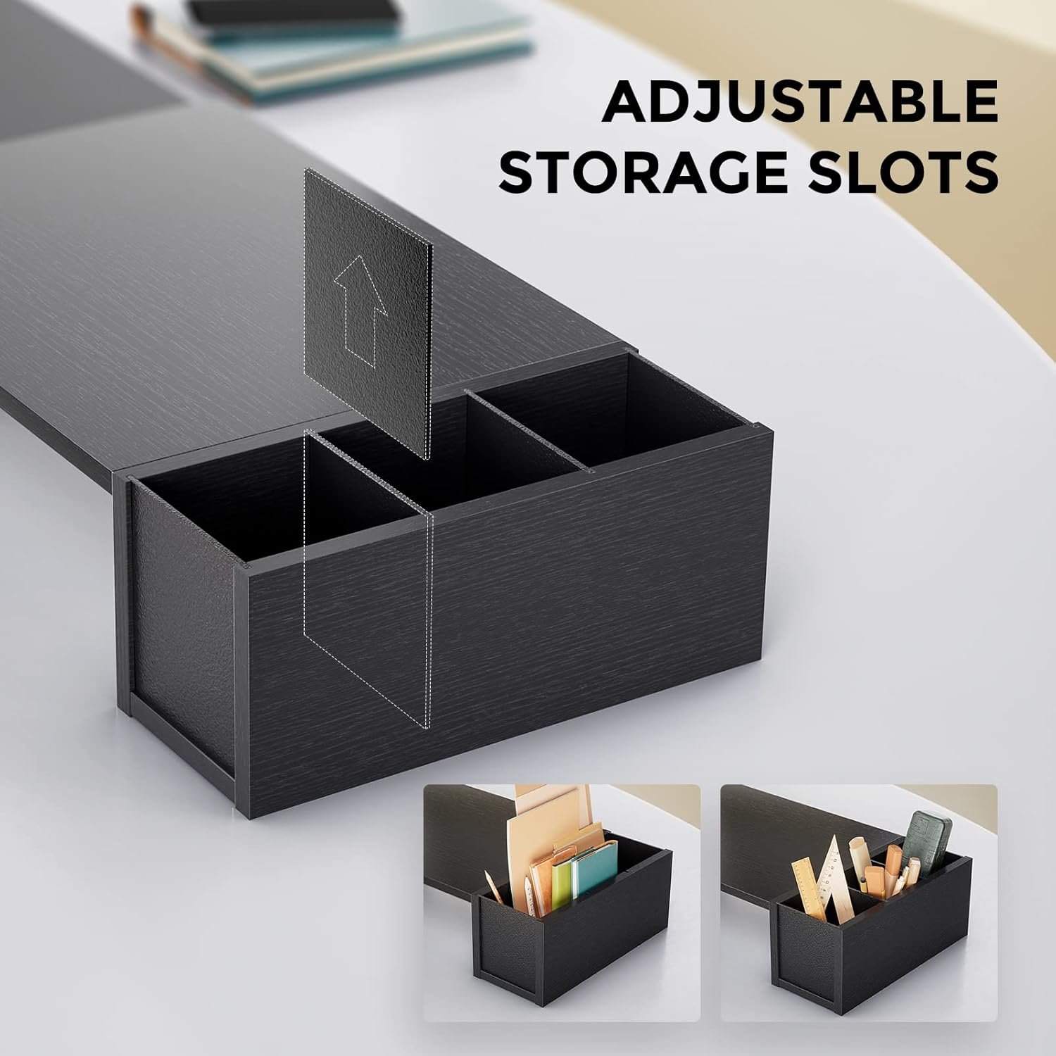 EXTRA SLOTS FOR STORAGE ORGANIZER: Each side of the desk organizers connect with a big storage slot, which can be separate to 6 slots smaller to put office supplies (like pens, staplers) in it. Without clapboard, you will get a bigger shelf for books and files.