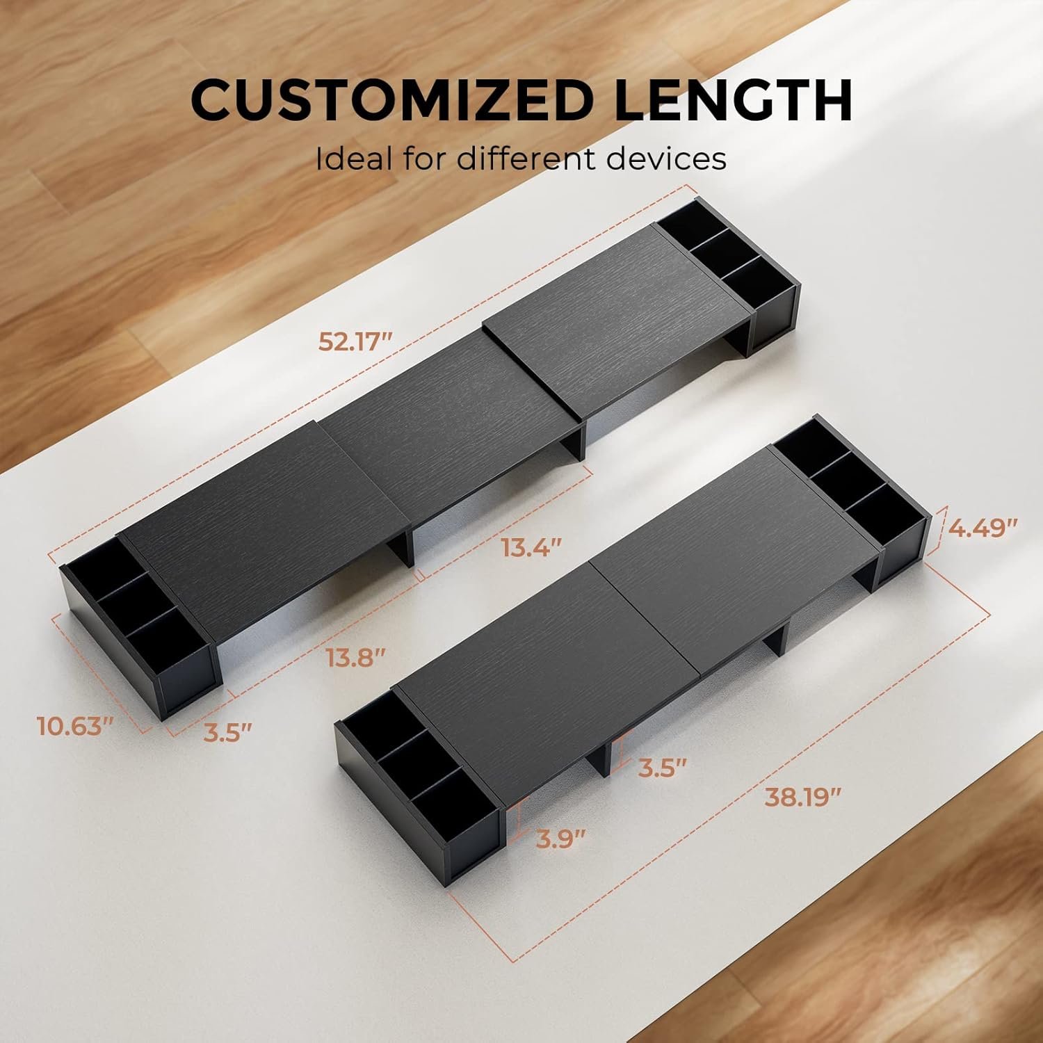 FREELY ADJUST LENGTH & ANGLE: The length of computer stand can be adjusted from 38.19 inch to 52.17 inch for different size of monitors. You can also set angle of adjust dual monitor stand to a suitable angle, customizing a comfortable position to work flexibly.