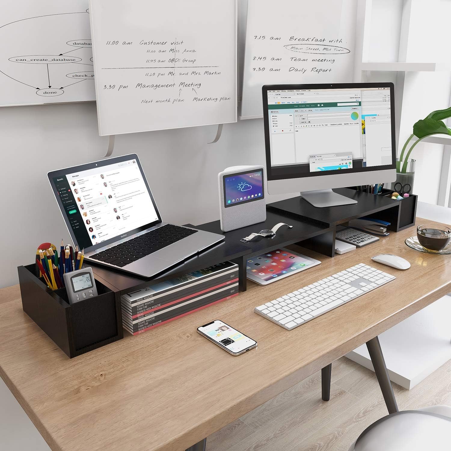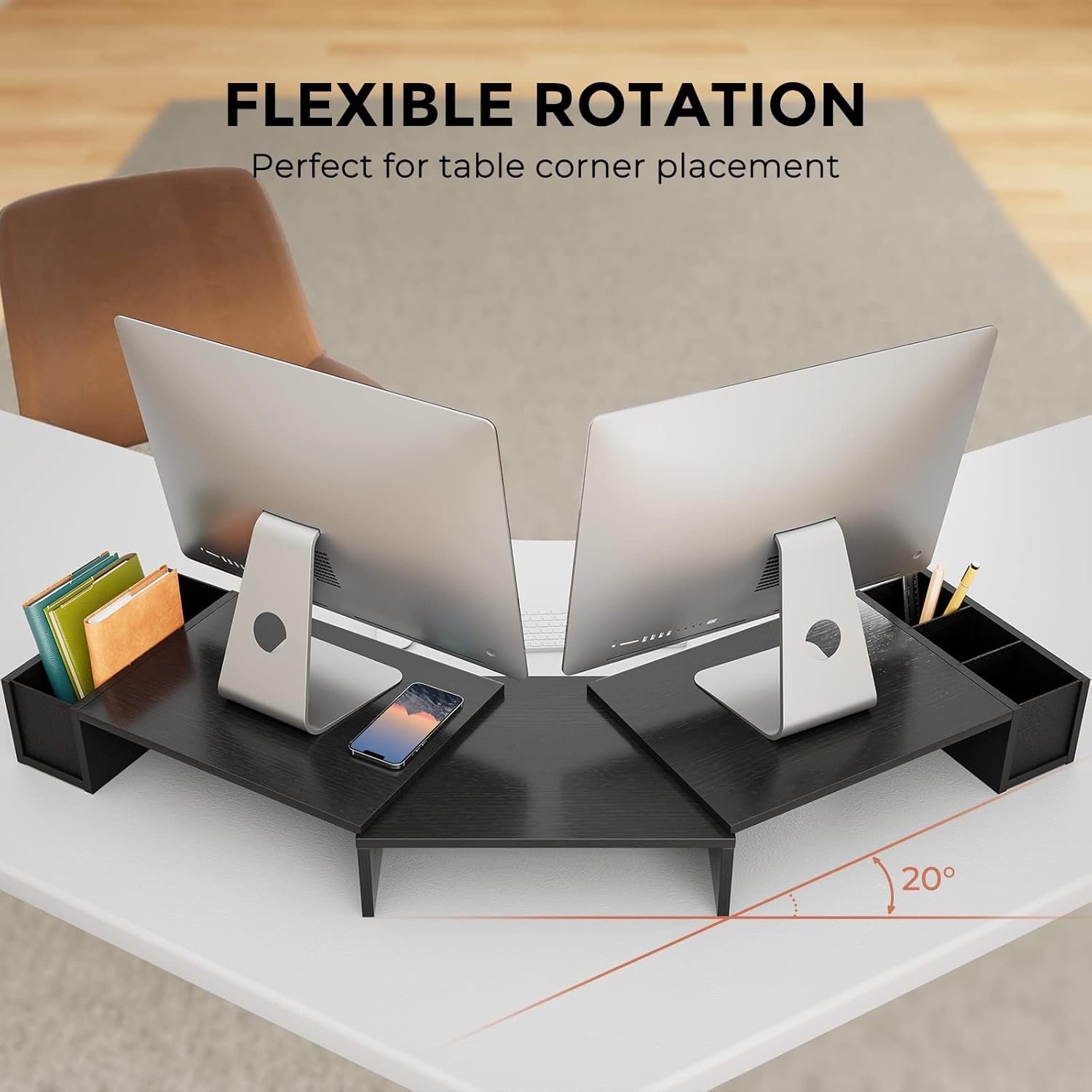 LORYERGO Dual Monitor Stand, Laptop Stand with Storage Accessories Slots, Length and Angle Adjustable, Ergonomic Viewing Height