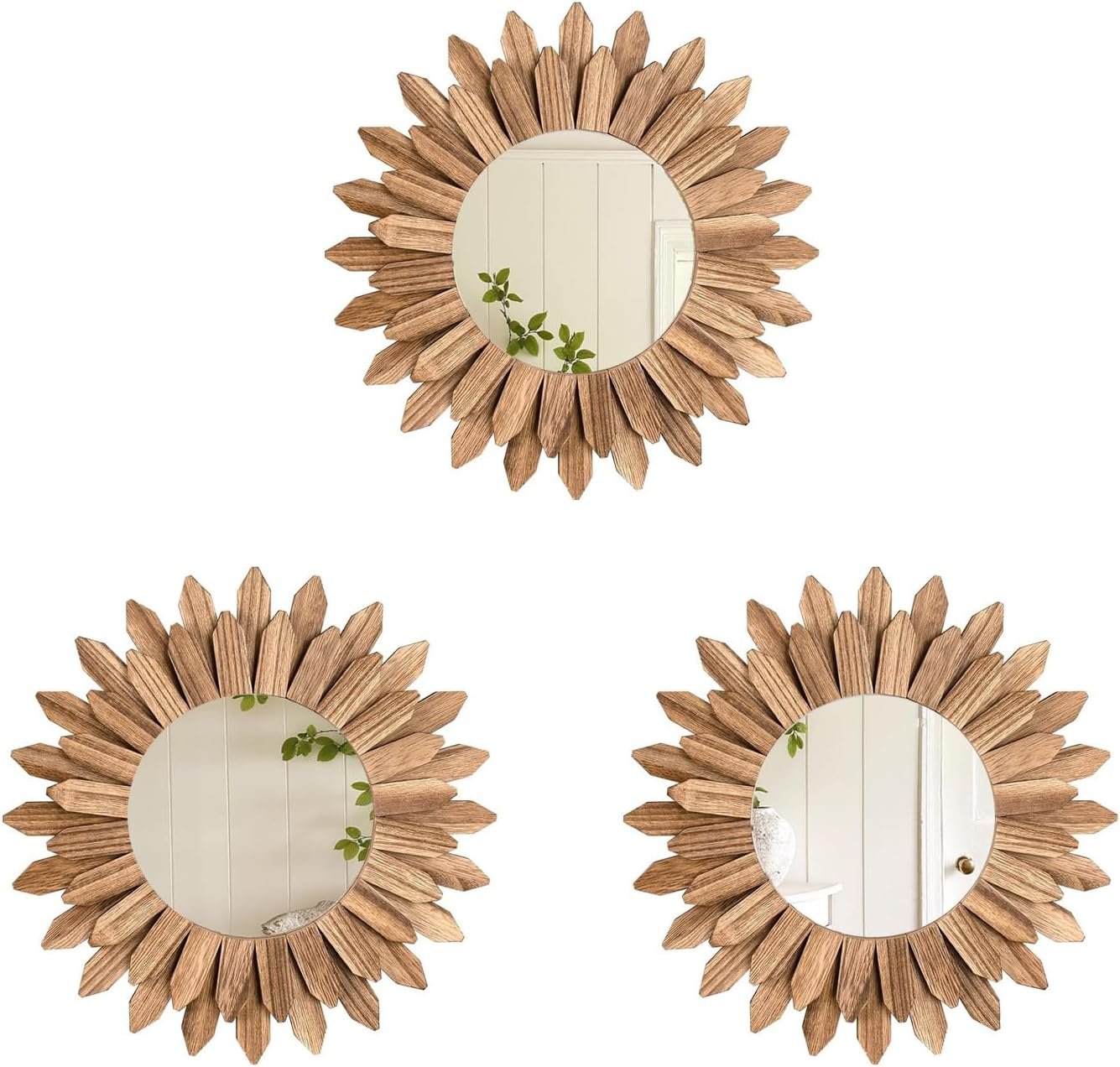 LOSOUR Boho Wall Decor Sunburst Mirror 3 Pack Rustic Round Wood Mirror 12 inch Boho Mirror Home Decor Farmhouse Room Decorations for Bedroom Living Room Entryway
