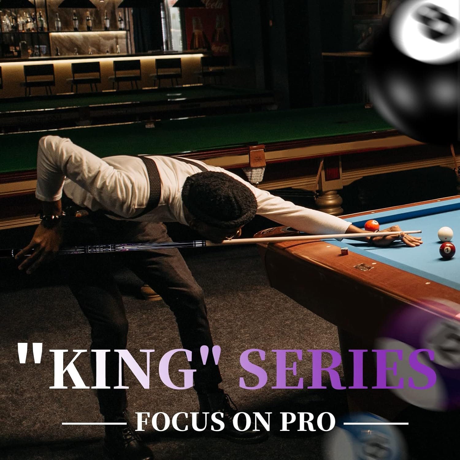 🎱【PROFESSIONAL POOL CUE】58 Inch length and 18 Oz weight,The “King” series cue sticks with 13mm multi-layered tip adopt portable 1/2 detachable structure, Excellent billiard equipment for Pro.
