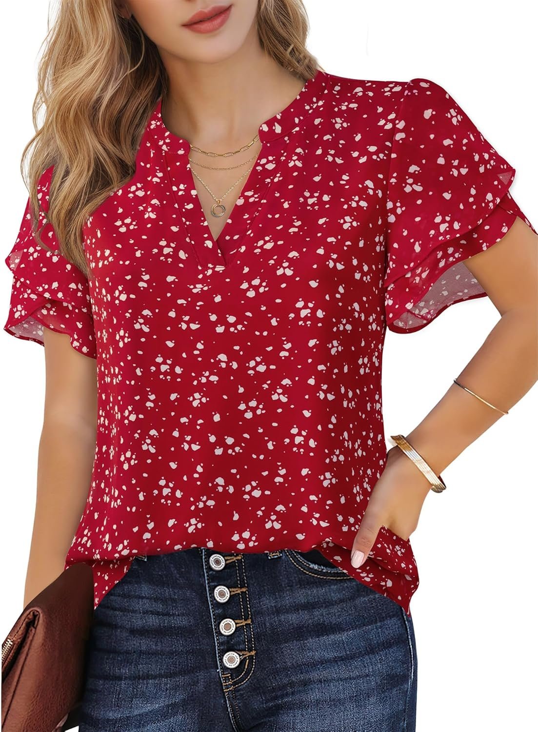 Lotusmile V Neck Floral Shirts Cute Summer Tops for Women Dressy Casual