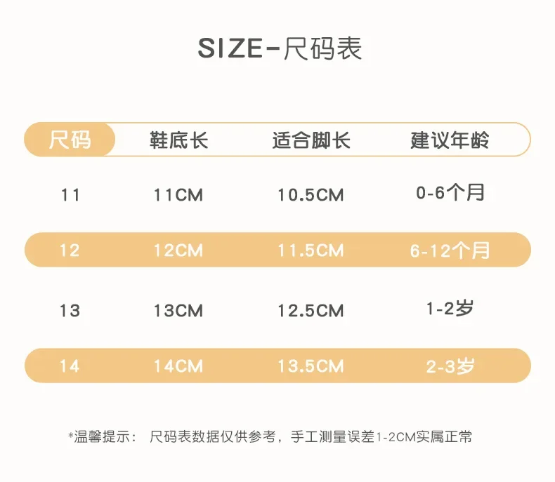 Size:11(0-6M)/12(6-12M) / 13(1-2Y) / 14(2-3Y)