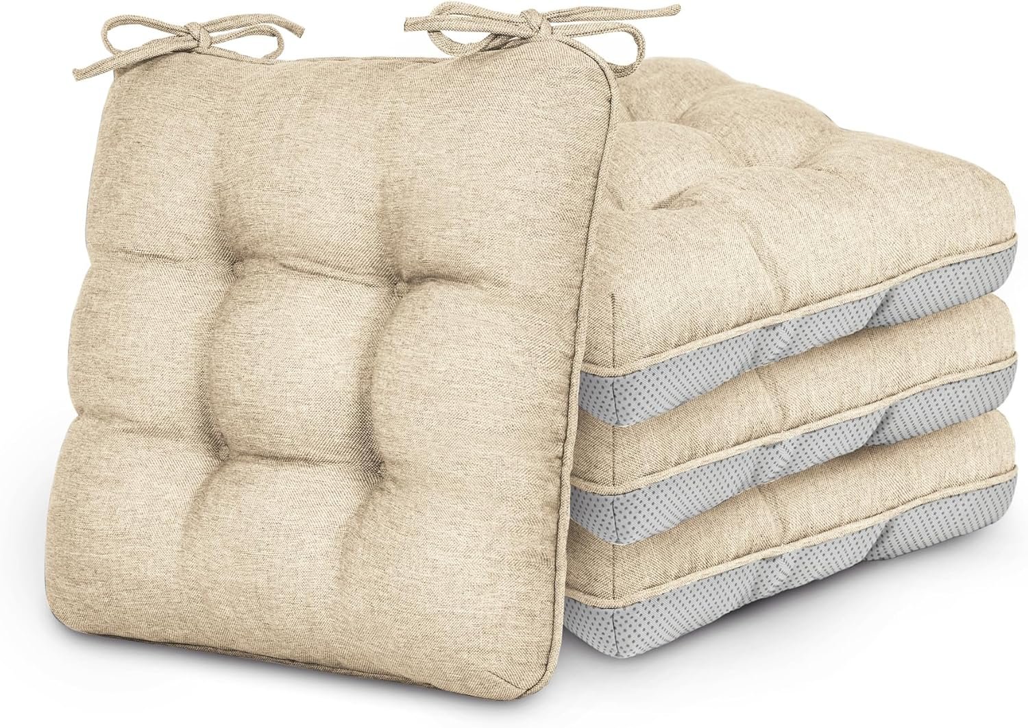 Love’s cabin Memory Foam Chair Cushions Set of 4, Outdoor/Indoor Chair Pads for Dining Chairs 4 Pack, Seat Cushions for Kitchen, Dining Room, Office, Patio Chairs, 19″x19″x3.5″ Khaki