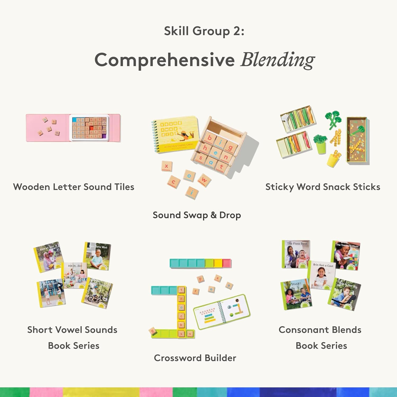 PRACTICE KINDERGARTEN AND 1st GRADE READING SKILLS: Part 2 of The Reading Skill Set’s phonics-based approach teaches reading skills that build on each other across 3 skill-groups: Basic Blending, Comprehensive Blending, and Storytelling.