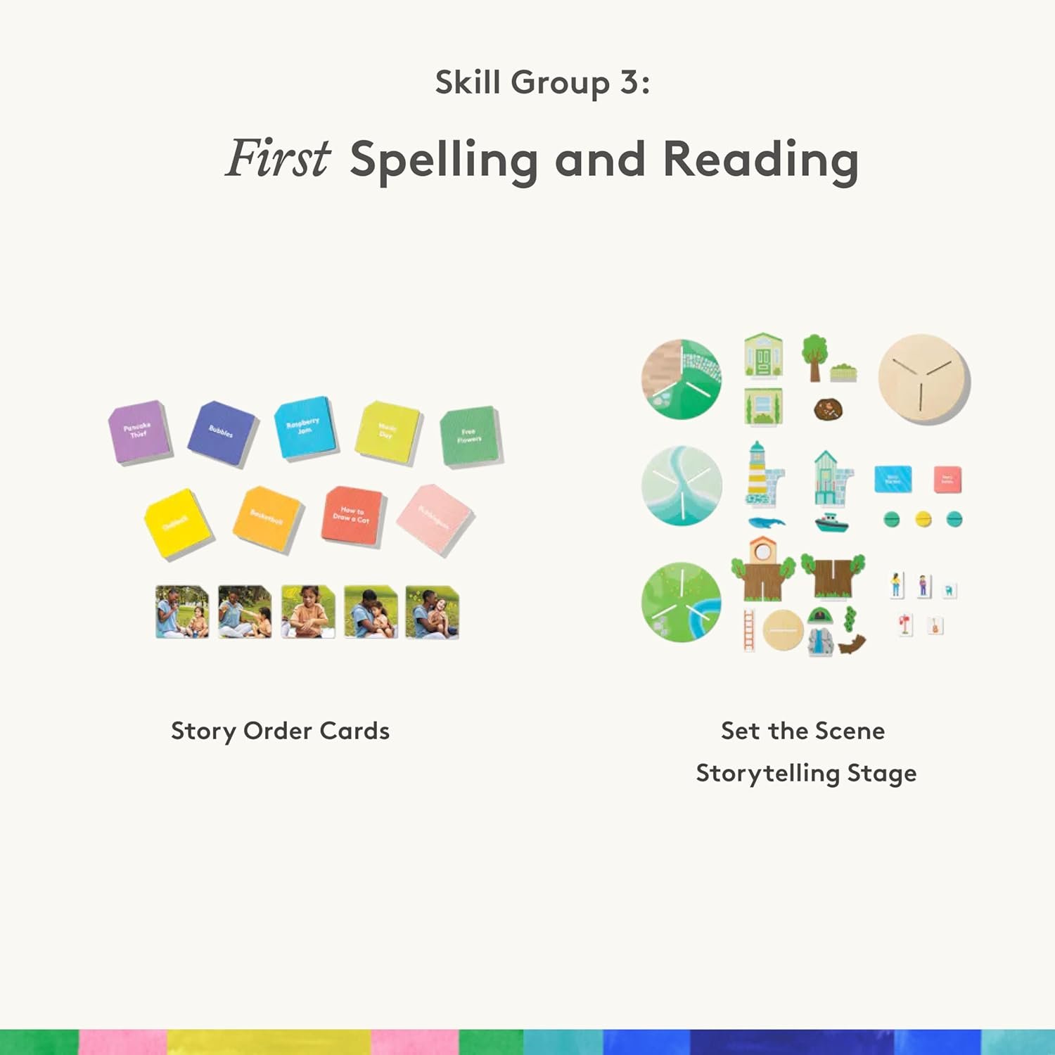 An award-winning phonics-based reading program that motivates your Kindergartener or 1st grader to learn to read through fun screen-free games, books and activities. Part 2 of a 3-part program, part 2 focuses on practicing kindergarten and 1st grade reading skills and learning activities. Your kindergartener or first grader will learn to read with 7 skill-building and screen-free games. Then practice with 13 fun-to-read and confidence-building books. Each book practices the skills learned with the games. Part 2 of The Reading Skill Set’s phonics-based approach teaches reading skills that build on each other across 3 skill-groups: Basic Blending, Comprehensive Blending, and Storytelling. Parents get access to a Play Guide and an online portal with learning resources on why each skill matters, guidance on how to support your child’s reading journey, game tutorials, ideas for practicing skills, and tips to keep play fun. Prepare for Kindergarten and 1st grade and supplement what your child is learning at school with fun, easy-to-follow games and activities Designed by the stage-based play experts at Lovevery. Lovevery’s Reading Advisory Board includes literacy experts from Stanford University, The New York Public Library, KIPP Foundation, Toddlers CAN Read, and more. When learning to read is fun, children’s motivation stays high. All reading skills are taught through interactive learning games and activities, many of which are self-correcting and can be played independently. The Reading Skill Set is approved for state and ESA funding in the following locations: New York City, Texas, Arizona, Idaho, Indiana, New Hampshire