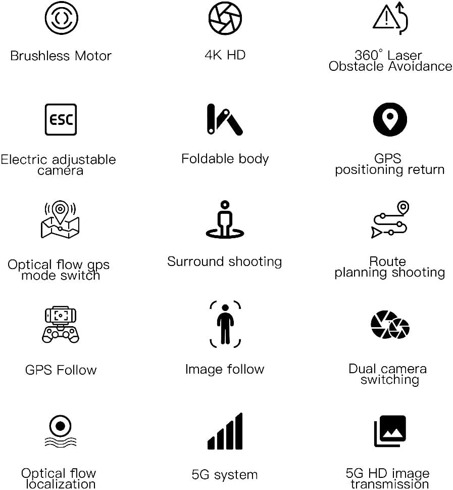 Lozenge Drone 4K UHD Camera with Image Stabilization: The optimized full HD Camera built with Shock Absorption holder ensures shooting 3840*2160 high resolution images and 1280*720 high resolution videos without camera vibration. 5G FPV transmission and 90°adjustable lens enables you to see the world from different angle.