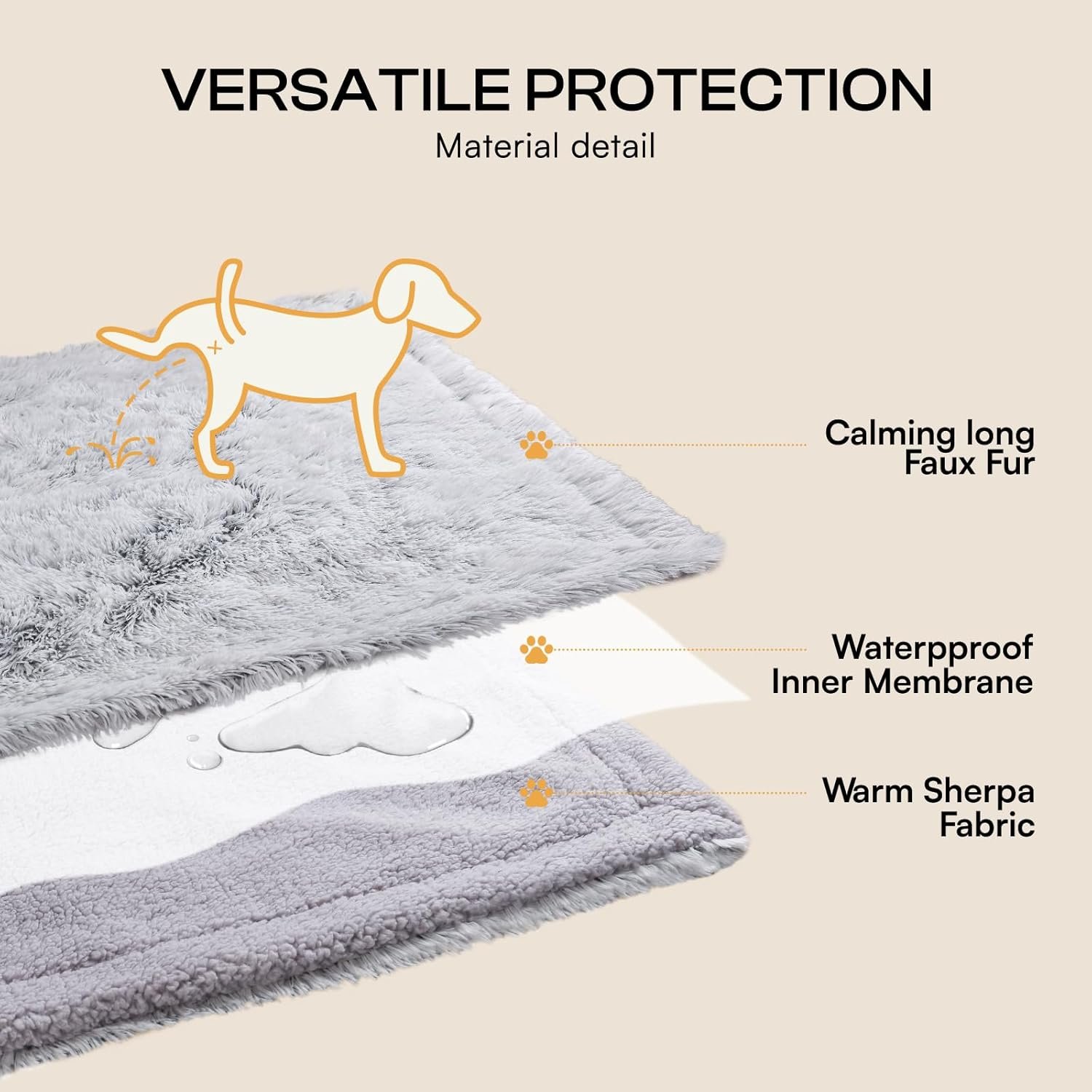 CALMING COMFORT: Our waterproof fleece pet blanket provides a soft, plush place for your pup to rest. One side features cozy and soft Sherpa fleece while the other has calming faux fur to mimic a mother’s fur coat. Designed to offer superior comfort and a reassuring sense of security, allowing them to rest and relax with ease.