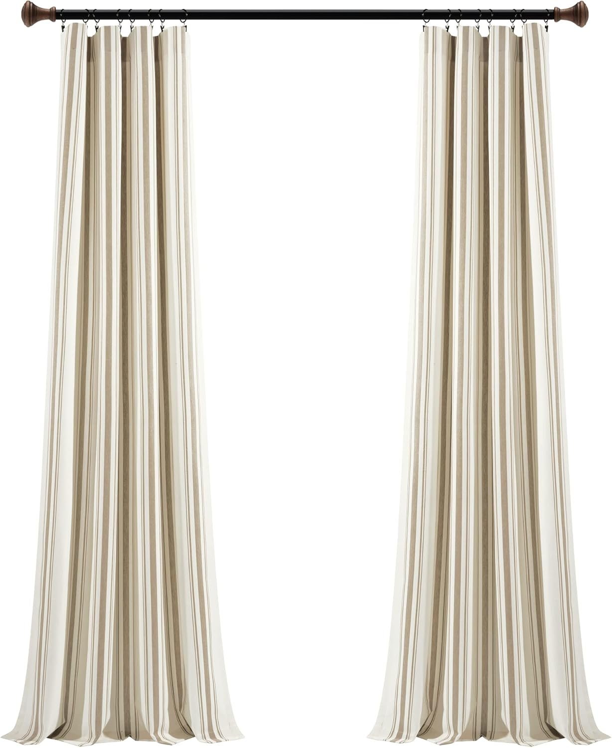Lush Decor Farmhouse Stripe Yarn Dyed Cotton Window Curtain Panel Pair, 42″ W x 84″ L, Neutral – Classic Modern Rustic Charm – Eco Friendly Cotton Fabric