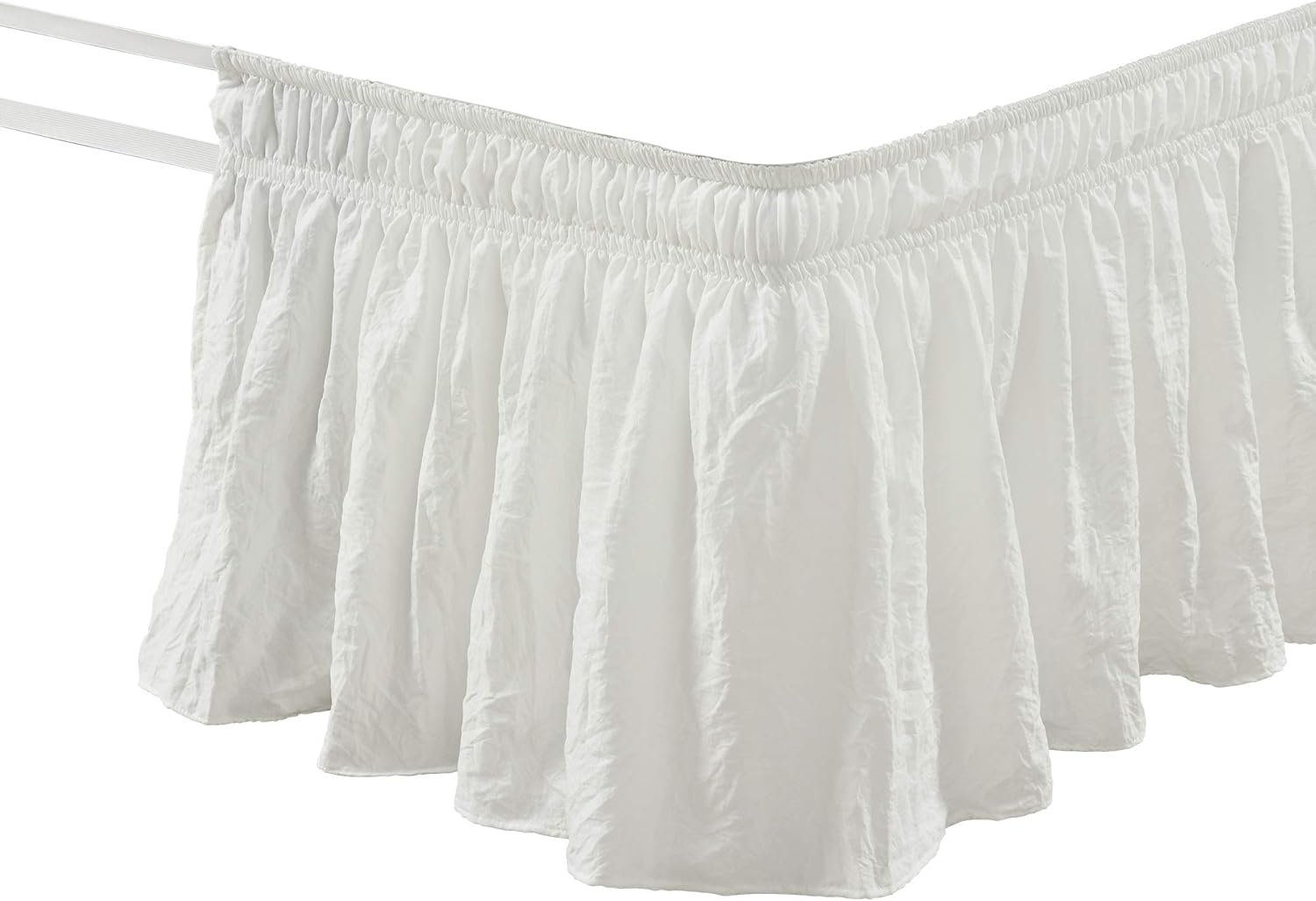 Lush Decor Ruched Ruffle Elastic Easy Wrap Around Bedskirt, Queen/King/Cal King, White
