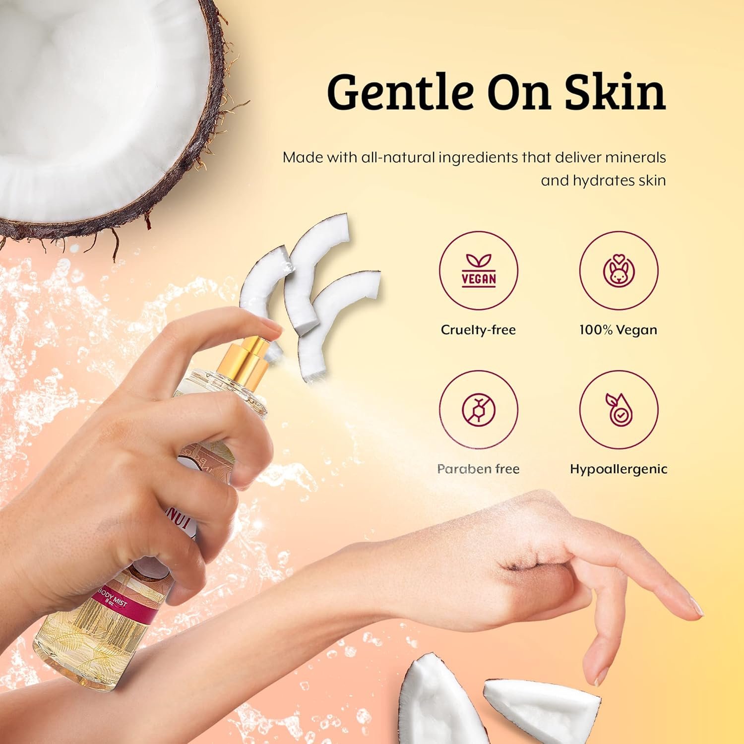 Elevate Your Senses: Our Coconut Body Spray for Women is a captivating blend of warm and cozy fragrances, designed to envelop you in pure luxury. Indulge in the essence of Coconut, a scent that evokes tropical paradise and relaxation.