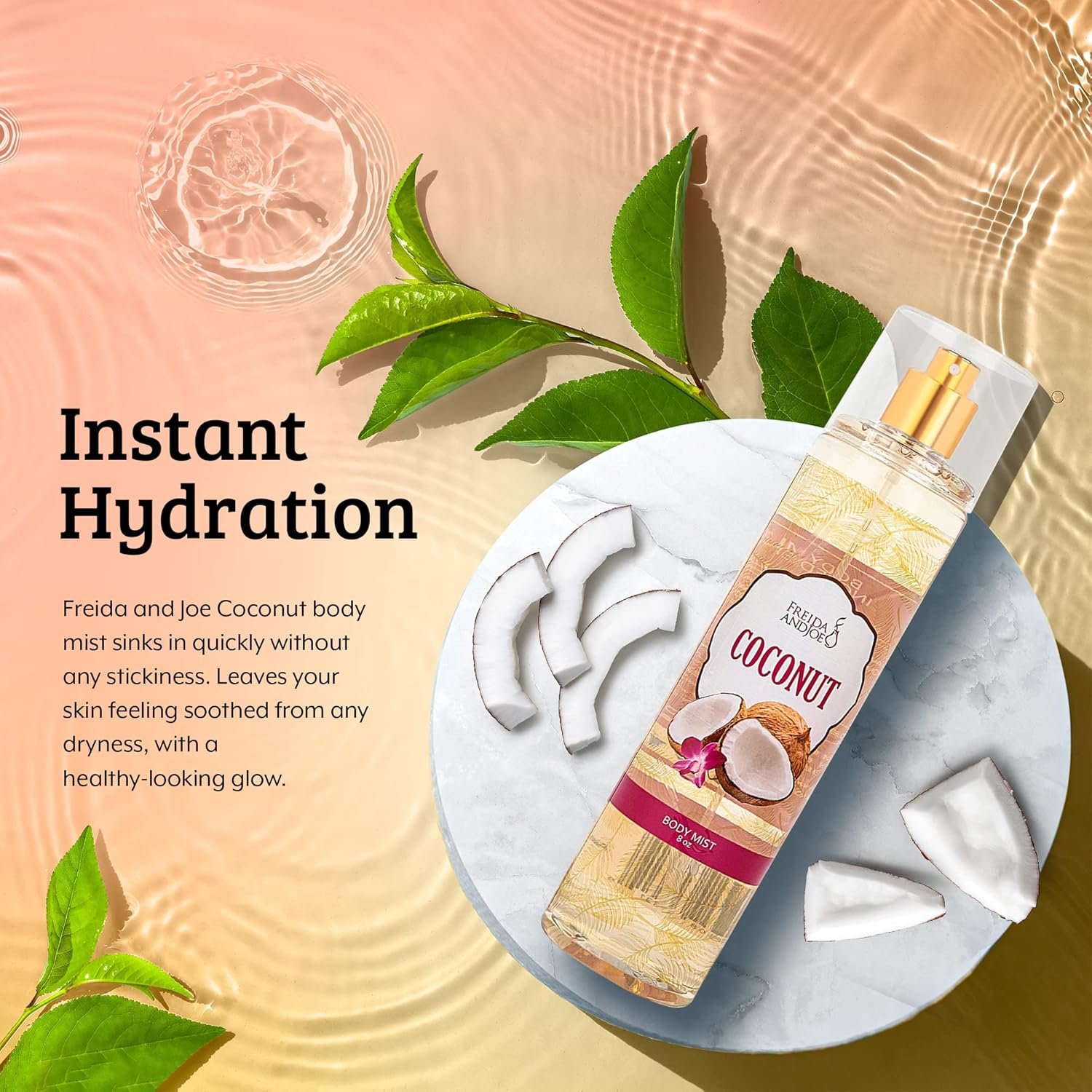 Luxurious Coconut Body Mist Fine Fragrance, Women’s Warm & Cozy Luxury Scented Gifts & Presents, 8oz Fine Mist Spray Bottle (Coconut)