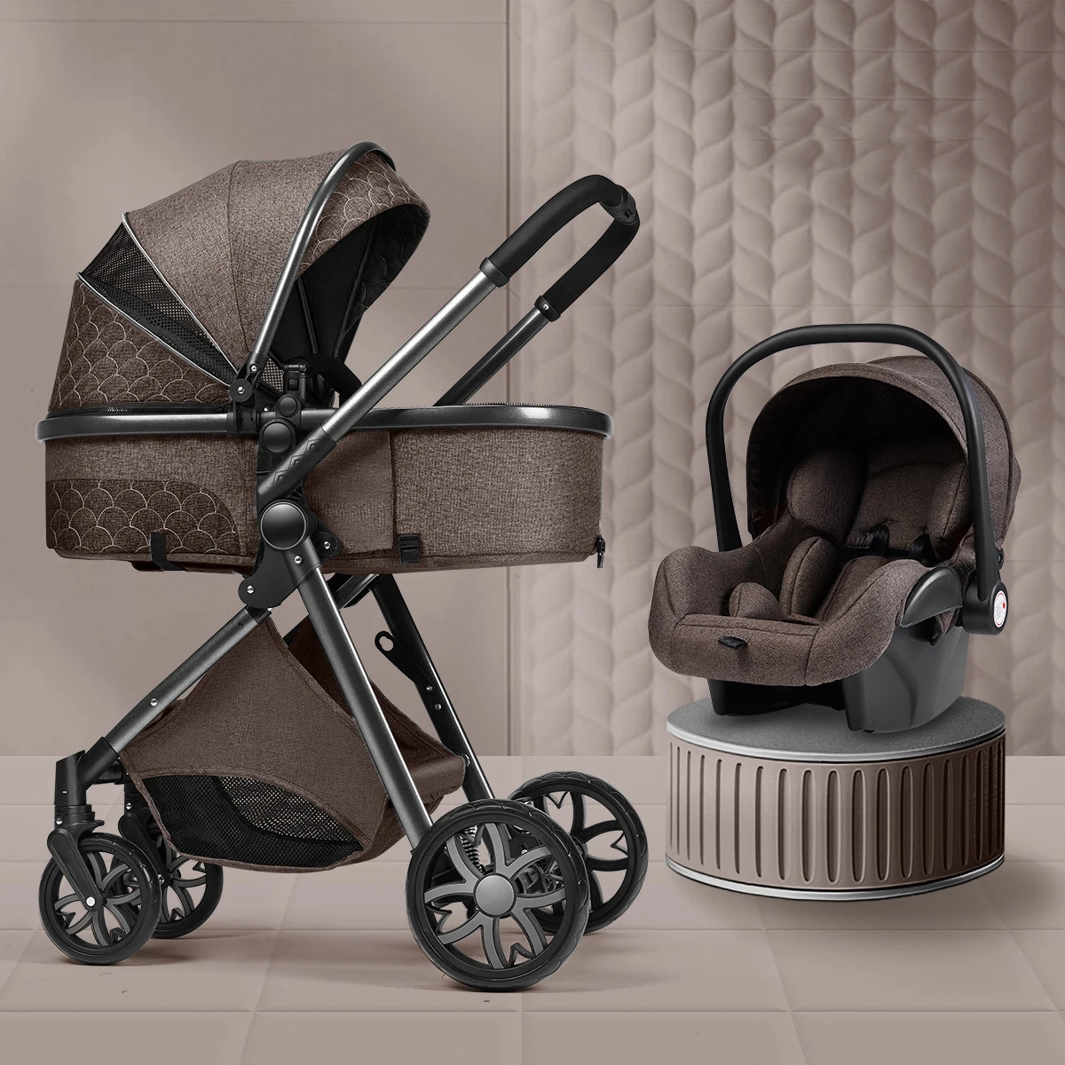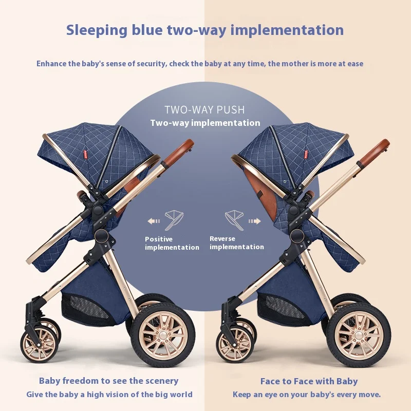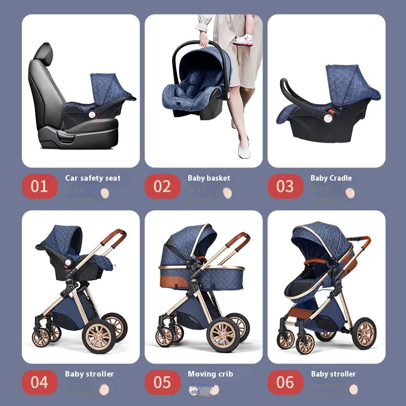 Luxury Baby Stroller 3 in 1 High Landscape Baby Cart Can Sit Can Lie Portable Pushchair Baby Cradel Infant Carrier