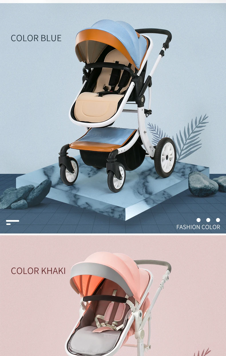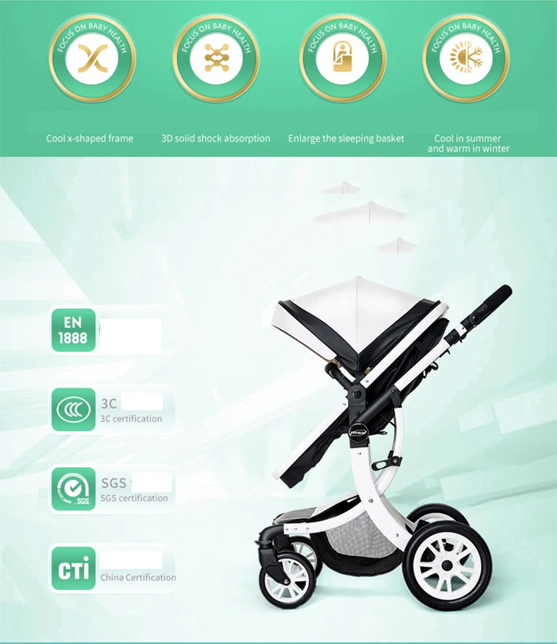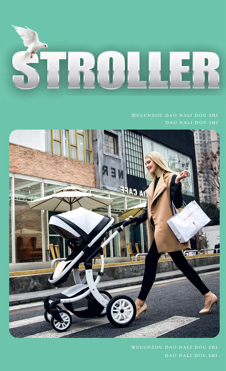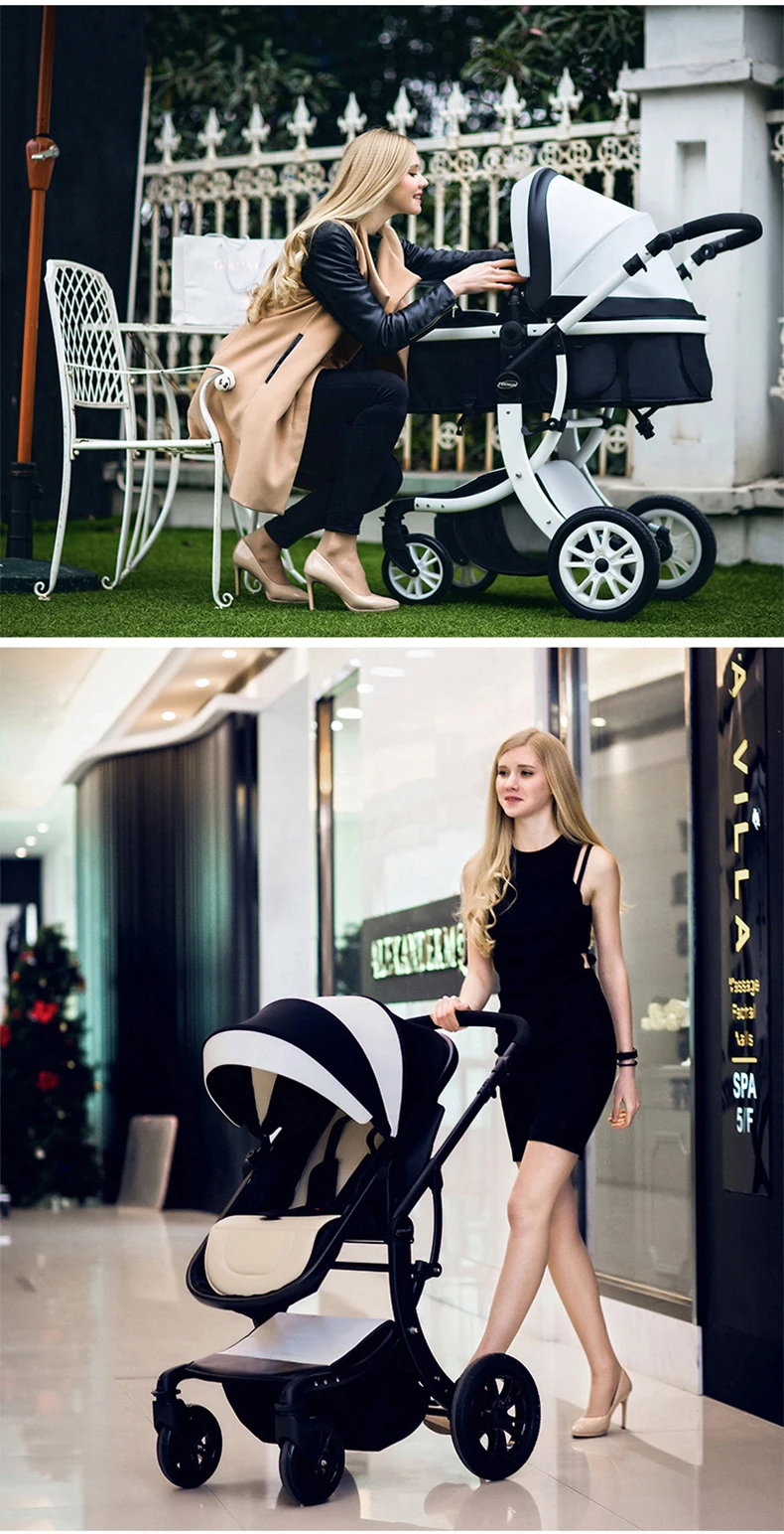 Luxury Baby Stroller 3 in 1,2025 New PU leather baby stroller and car seat, High Landscape Portable Pushchair,white pram