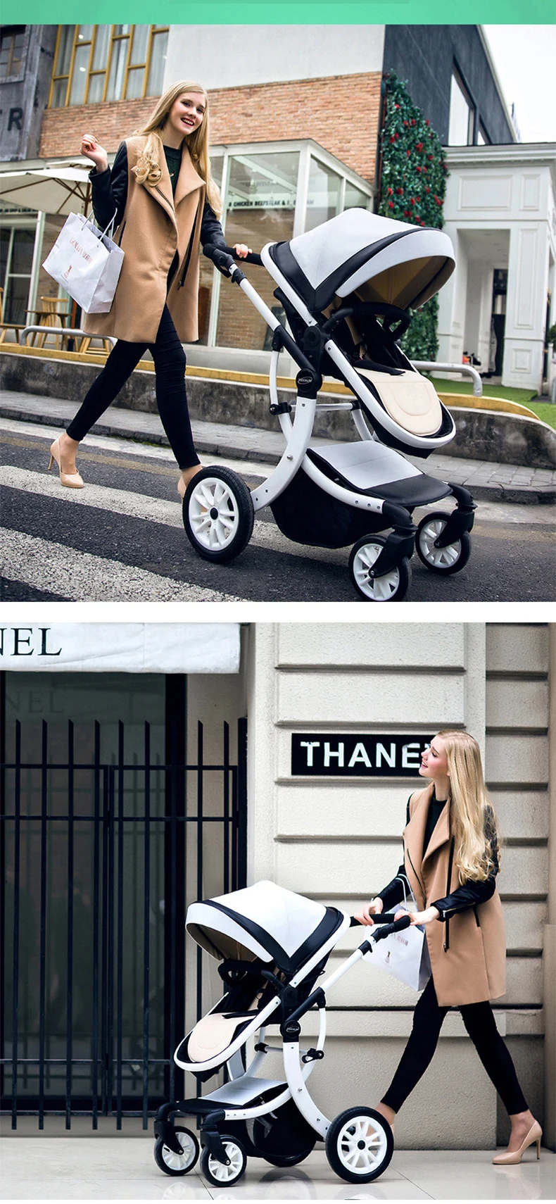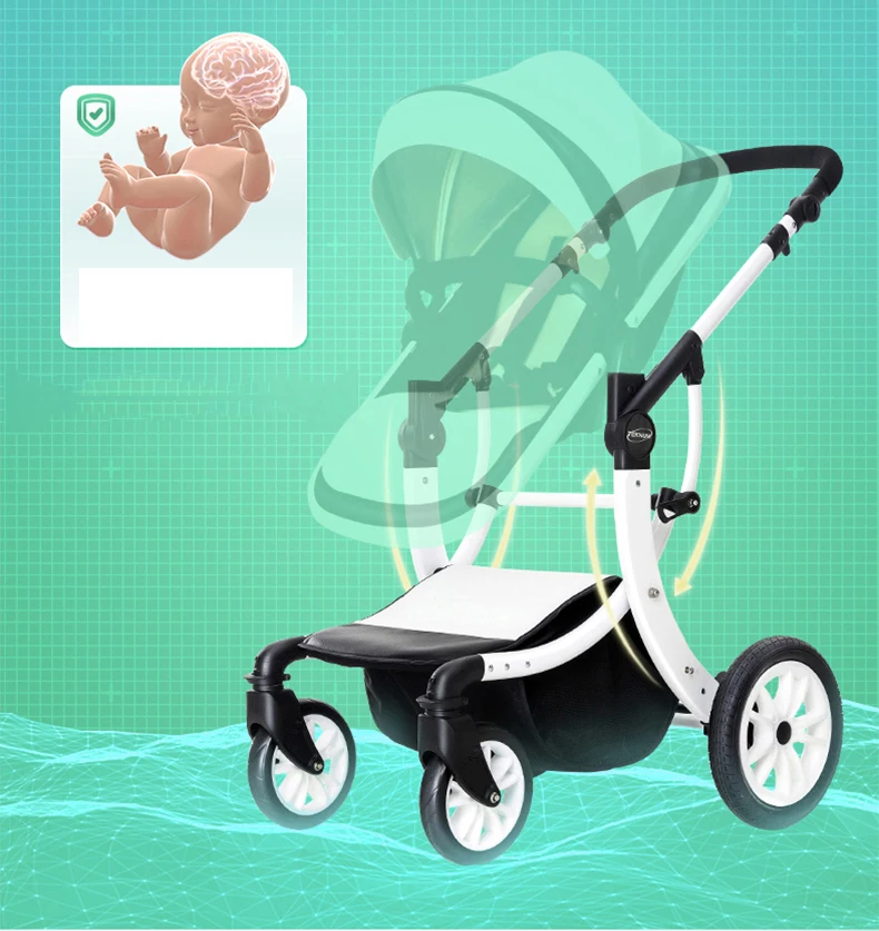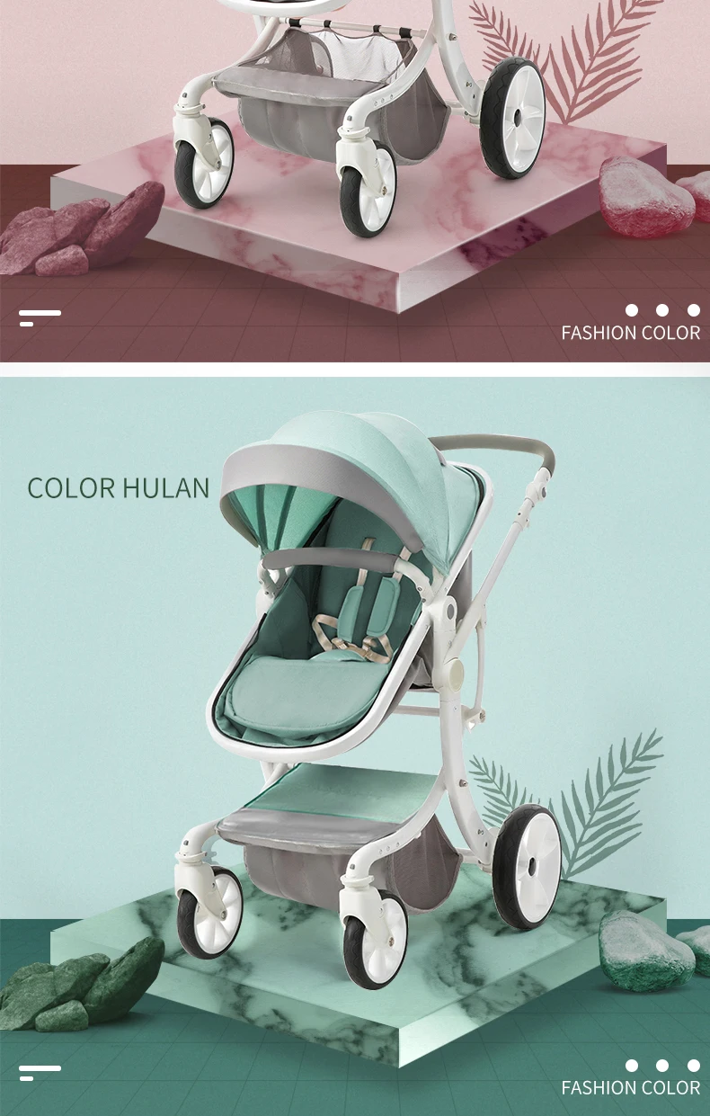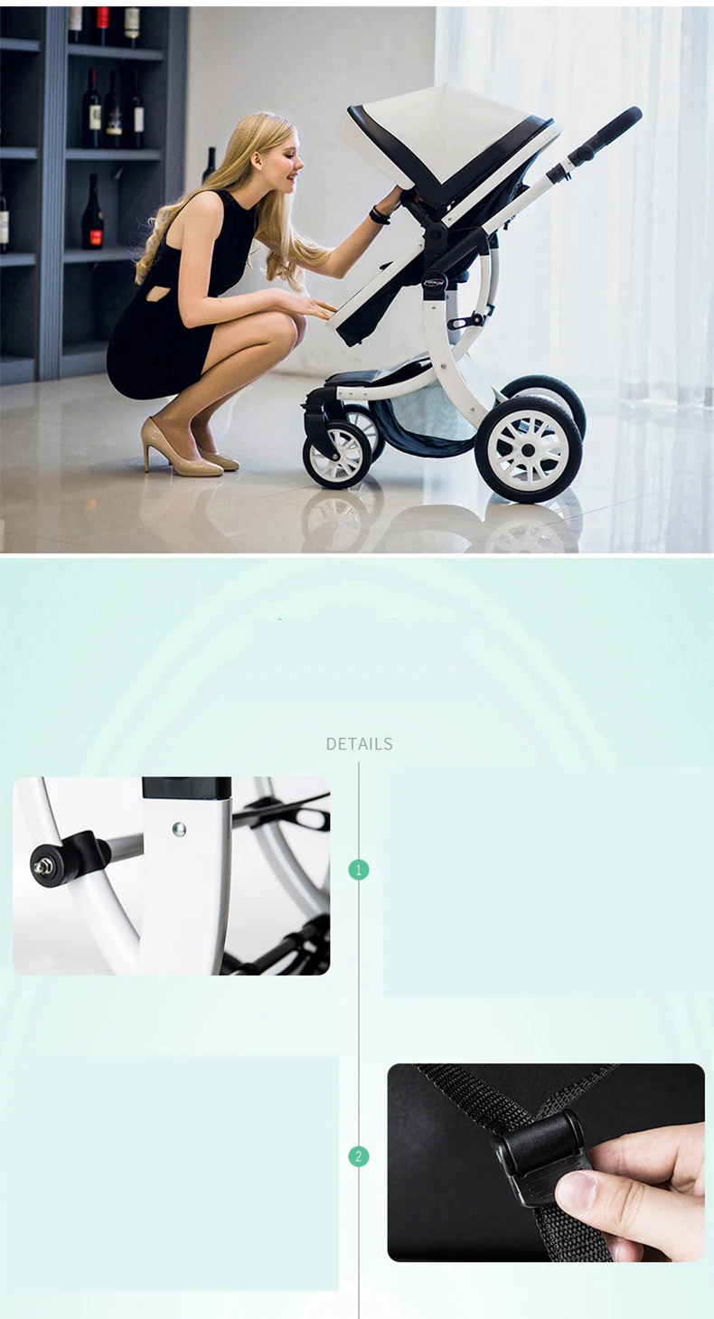 Luxury Baby Stroller 3 in 1,2025 New PU leather baby stroller and car seat, High Landscape Portable Pushchair,white pram