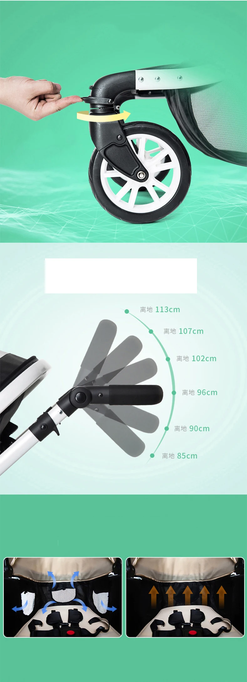 2.Two-way push:Directional and universal buckle. Directional wheels and universal wheels can be switched freely. Free conversion between two modes
