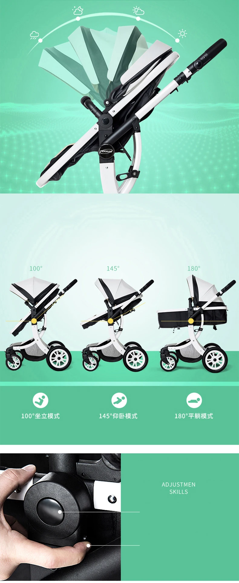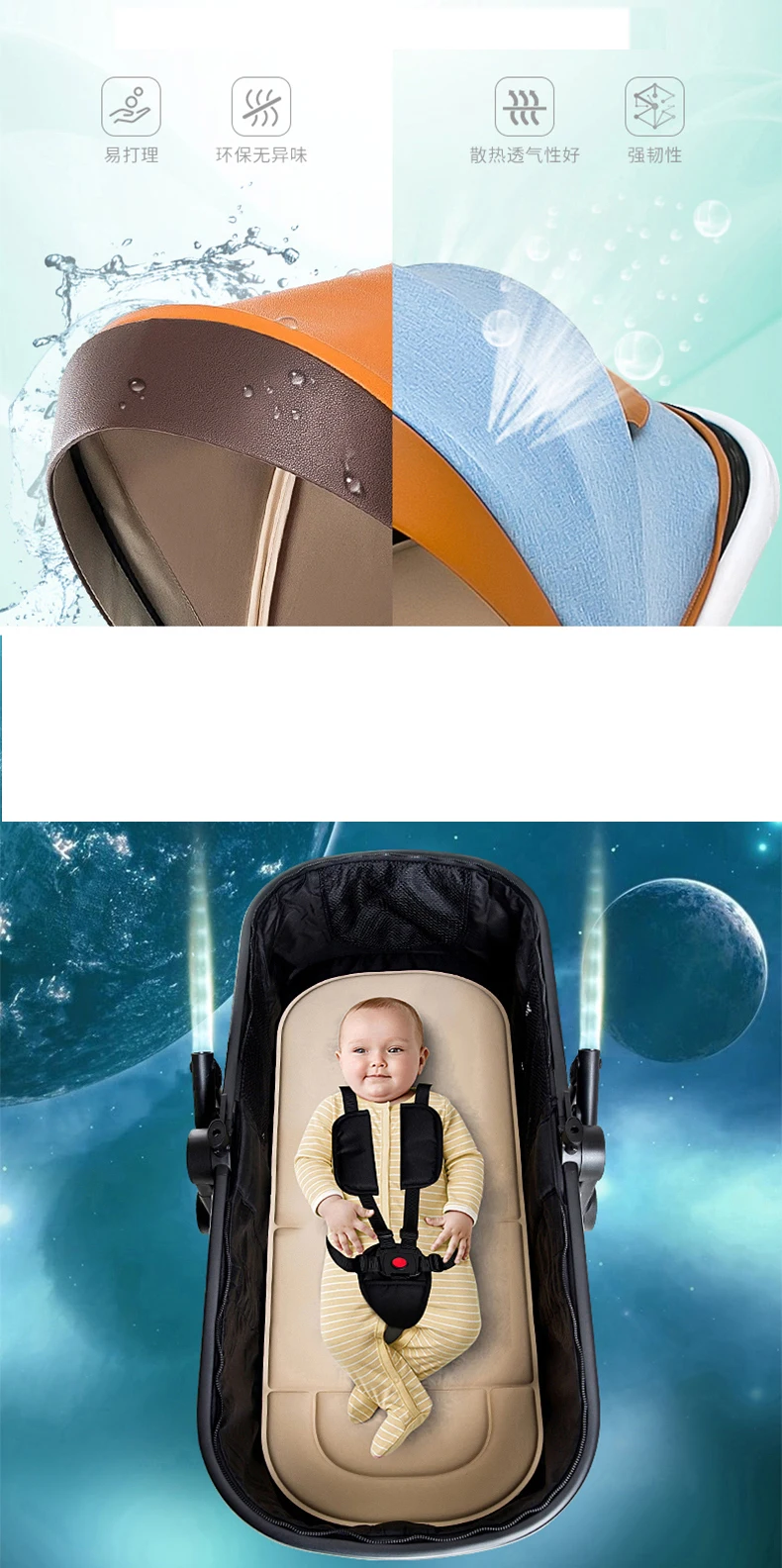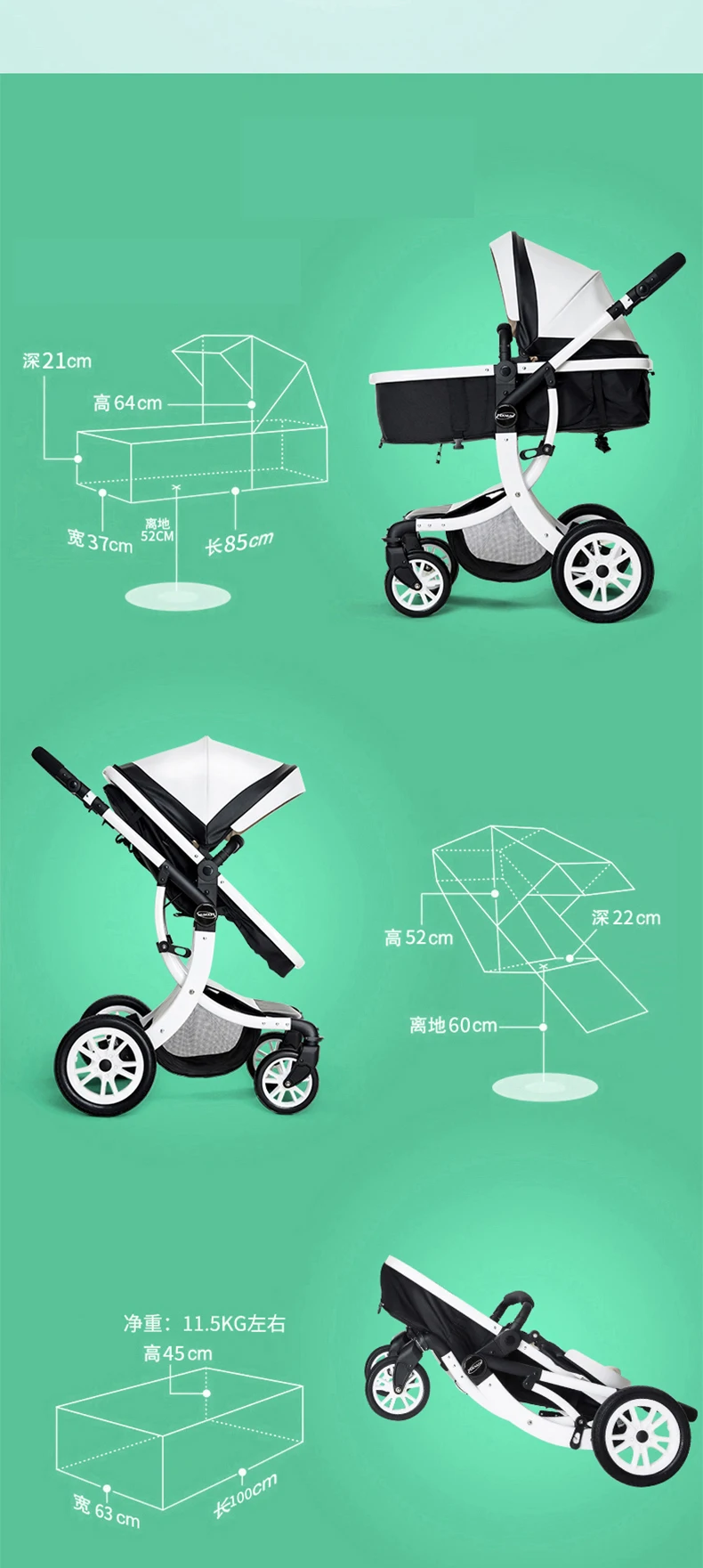Product material: aluminum alloy, PU car hood(white,black), cotton, linen, linen and other fabrics, Oxford sleeping basket, front and rear PU wheels