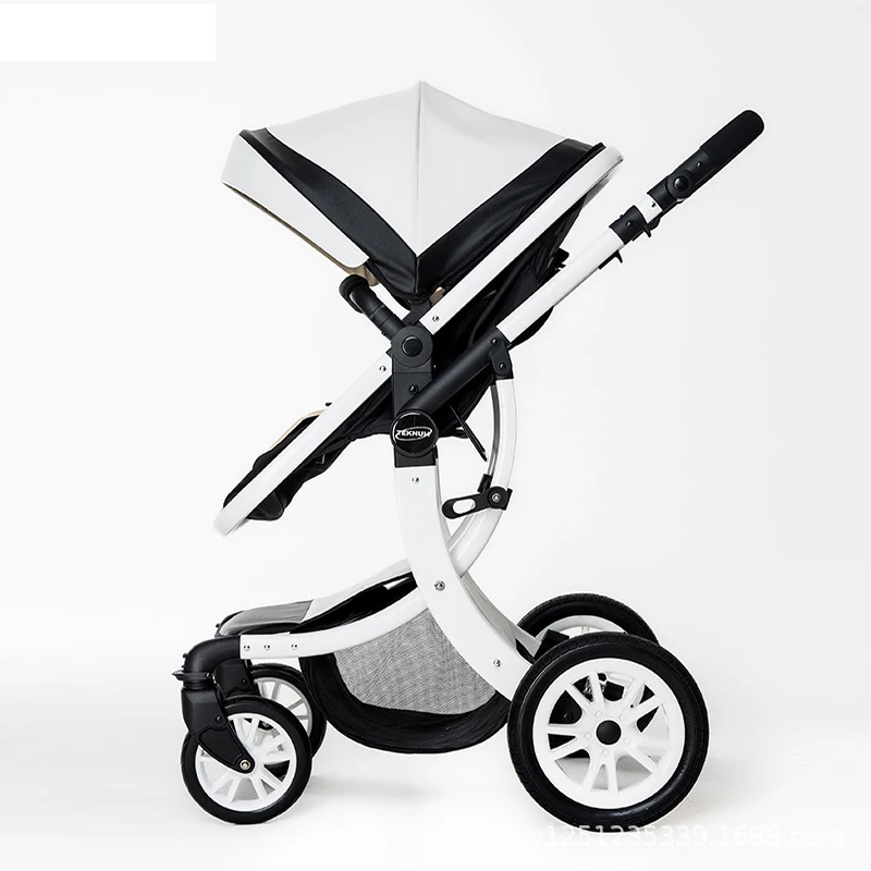Luxury Baby Stroller 3 in 1,2025 New PU leather baby stroller and car seat, High Landscape Portable Pushchair,white pram