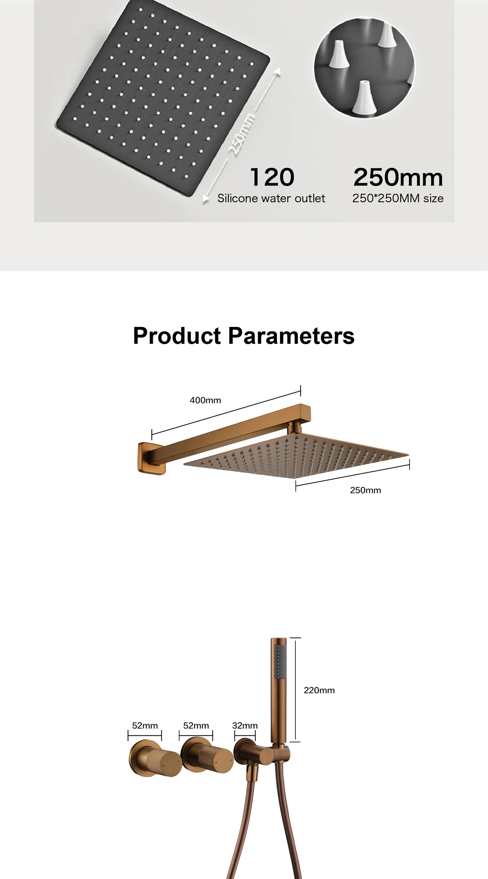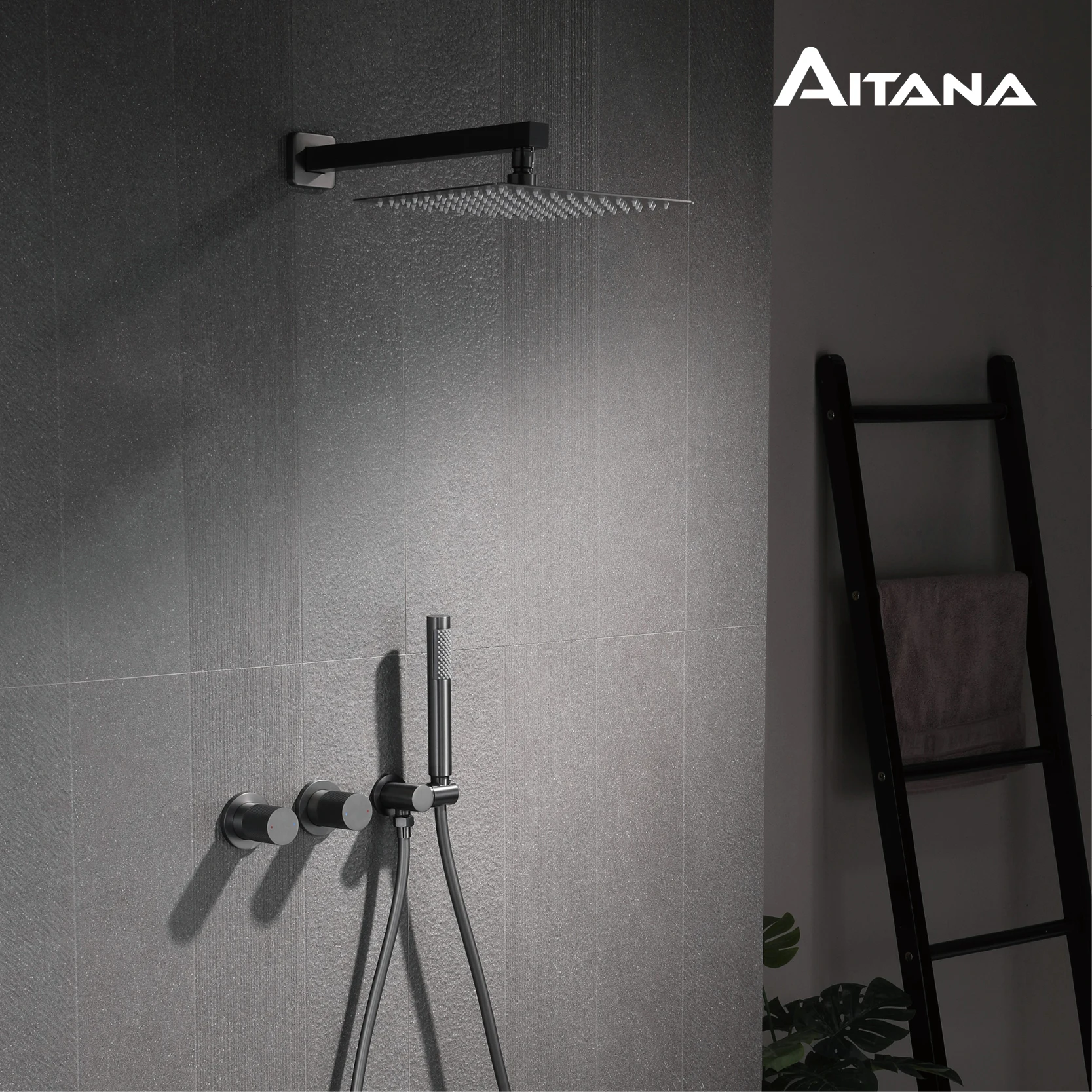 4 reviews for Luxury Bathroom Brass Gun Grey Wall-Mounted Shower System 2 function Embedded Bath Mixer Tap Dual Spray Rainfall/Handheld