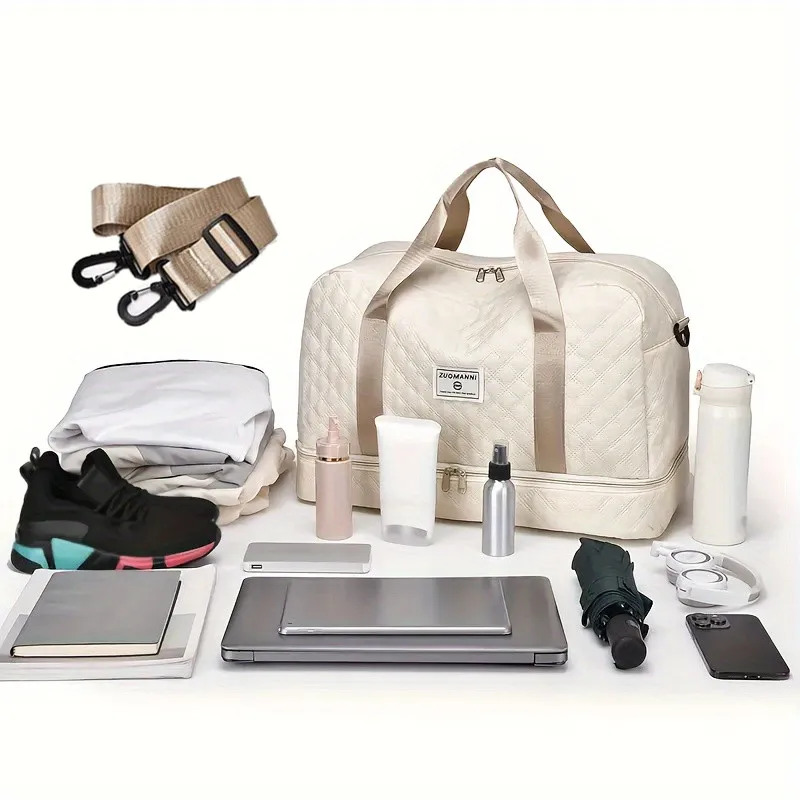 Luxury Duffel Bag, Large Capacity Handbag Shoulder & Crossbody Tote Bag With Dry Wet Separation Dual Side Pockets For Travel Gym