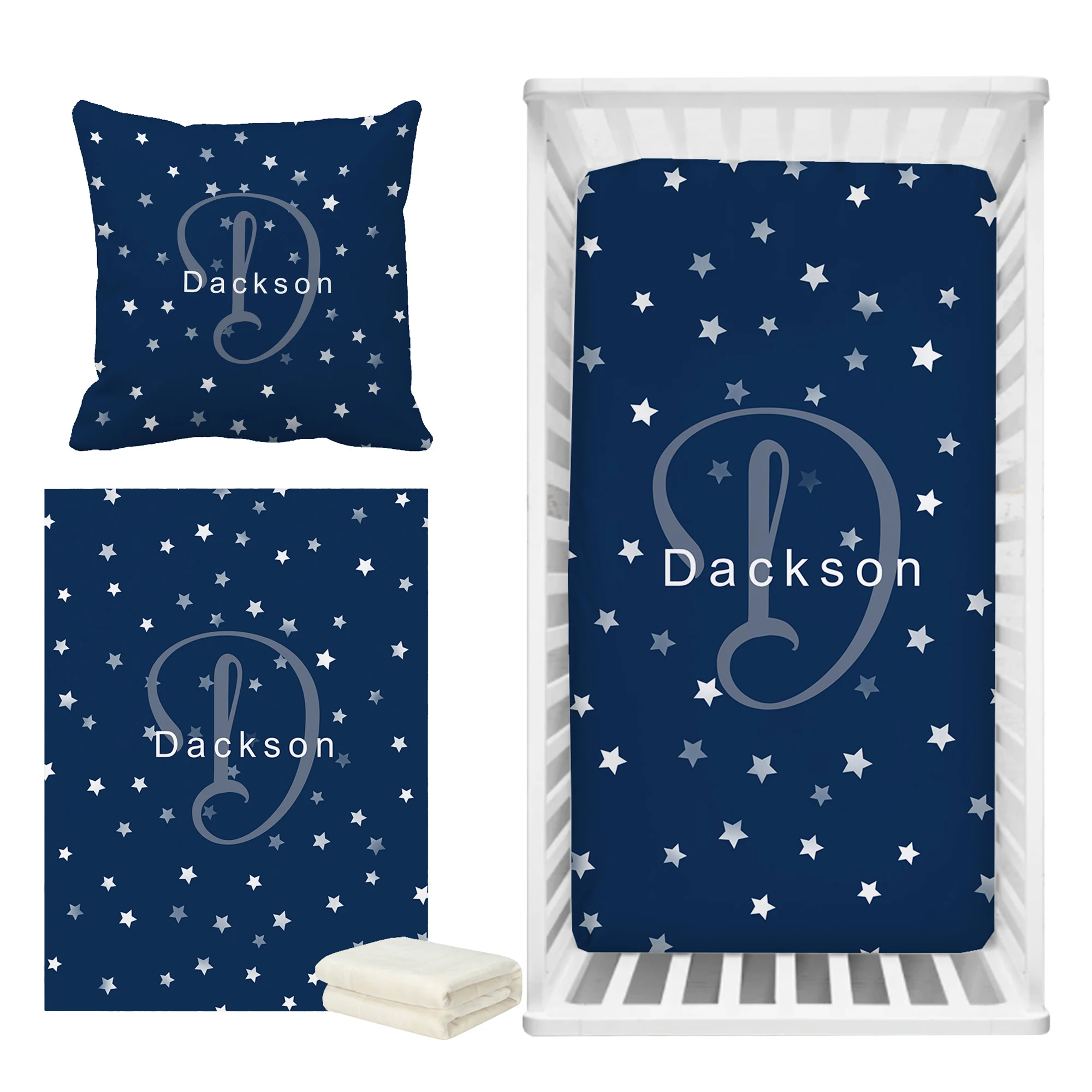 Product Name: LVYZIHO 4 Color Star Pattern Personalized Name And Monogram Bedding Set, Personalized Crib Bedding Set, Baby Shower Gift