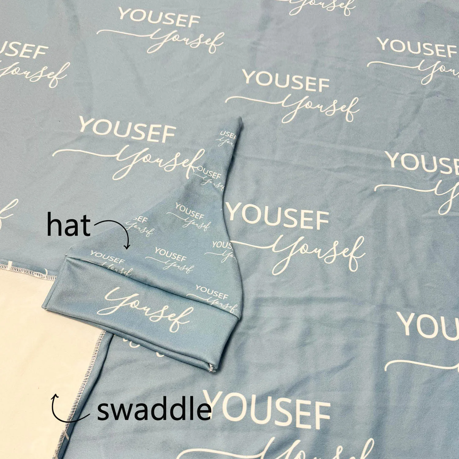 LVYZIHO Personalized Name Jersey Swaddle Set , Baby Name Hat, Baby Swaddle, Choose Colors and Font