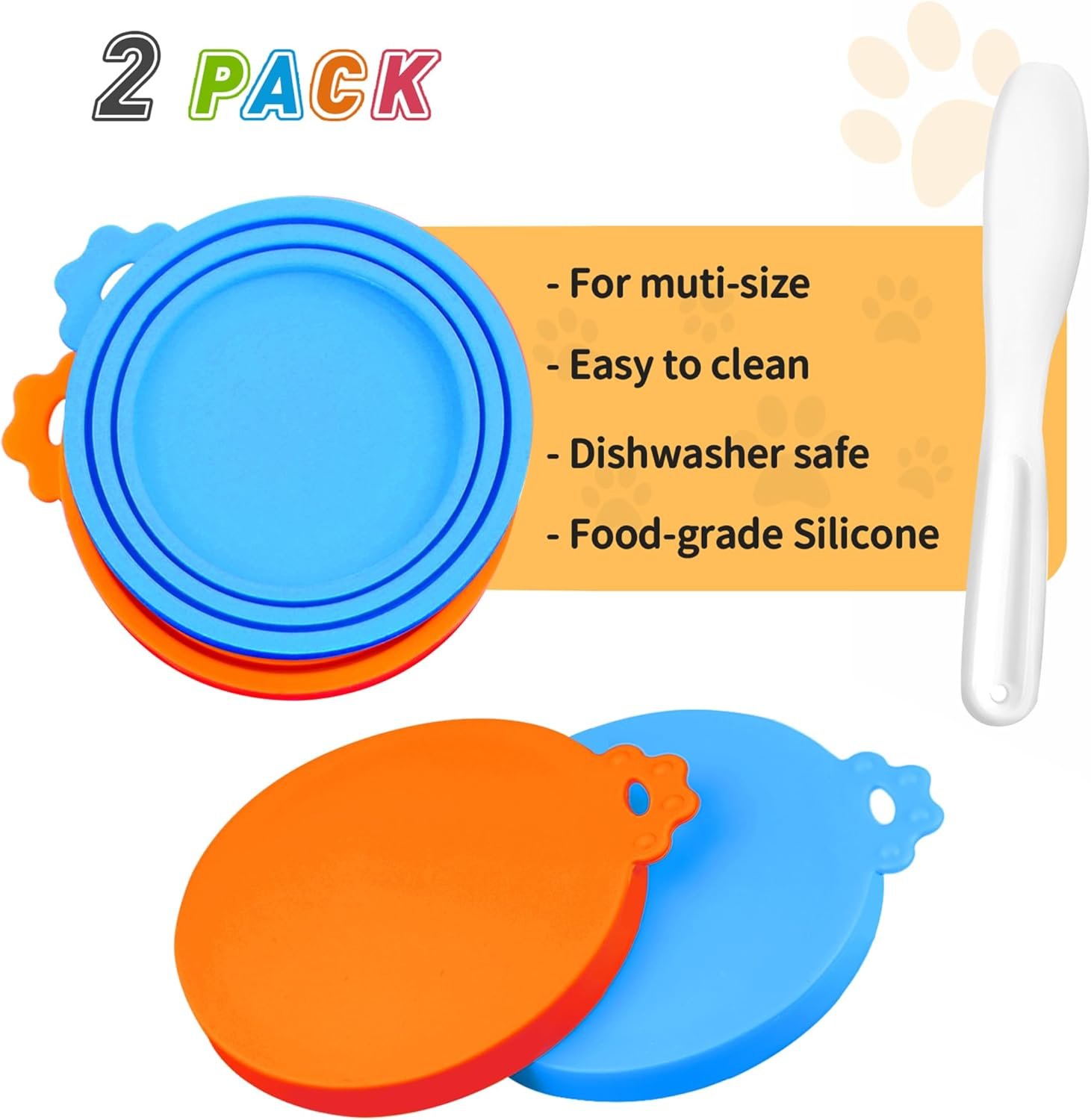 Lydia’s Deal 2 Pack Pet Food Can Covers, Universal Silicone Can Lids for Dog & Cat Food, Fits Most Standard Size Food Cans, BPA Free & Dishwasher Safe (Blue + Orange)